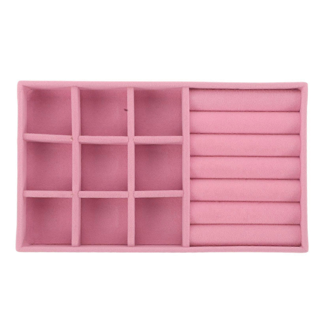 Description Our velvet jewelry organizer trays are for keeping your precious accessories neatly arranged and easily accessible. Ideal for use in drawers, these stackable trays can hold earrings, necklaces, bracelets, rings, and brooches. Simply place your jewelry in the designated compartments to prevent tangling and damage, ensuring your collection stays pristine. Features -Color:Pink -Material:Velvet -Size:21.00X12.30X2.30cm/8.25X4.83X0.90in -Luxurious material: made from velvet, this jewelry tray offers a soft and elegant touch, ensuring your jewelry is protected from scratches and damage -Versatile storage: designed to hold earrings, rings, necklaces, and bracelets, this organizer provides a comprehensive solution for all your jewelry storage needs -Space-saving design: the stackable feature allows you to maximize your drawer space, keeping your jewelry collection neatly organized and easily accessible -Elegant display: the sleek and stylish design makes it for displaying your jewelry on a vanity or dresser, adding a touch of sophistication to your decor -Easy access: the open top design allows for quick and easy access to your jewelry, making it convenient to find and select your favorite piecesPackage list: 1 x Velvet Jewelry Organizer Tray