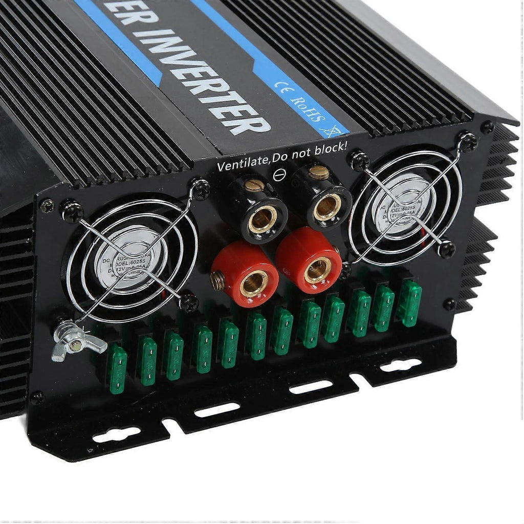 Feature: 1. High Performance: The power inverter comes with four built?in cooling fans for fast heat dissipation with low noise, help stable and accurate output voltage. 2. Powerful Function: The heavy duty inverter can convert DC12V to AC 220V?240V, meeting your mobile office, mobile communication, mobile leisure and entertainment needs. 3. Easy to Use: The pure sine wave inverter is equipped with fuse and wire harness, which is easy to use. Important note: Do not use in places with water. 4. Multiple Protection: With reverse input protection, high input voltage shutdown. Overload, over temperature, short circuit, low voltage, over voltage protection. 5. Wide Applications: Universal for 12V automobile, for TV, DVD player and other 220V ?240V household appliances. Essential supplies for travel, vacation, outdoor activities, emergency, etc. Specification: Item Type: Power Inverter Material: Iron Color: Blue + Black Application: Universal for 12V automobile, for TV, DVD player and other 220V -240V household appliances. Essential supplies for travel, vacation, outdoor activities, emergency, etc. DC Input: DC 12V AC Output: AC220V -240V Continuous Power: 2500W Peak Power: 5000W Output Waveform: Pure Sine Wave USB Output: 5V DC / 2.1A Better Working Temperature: 5 to 35?? Cooling Method: Fan. Package List: 1 x Power Inverter 12 x Fuse5 x Wire Harness1 x Instruction Note: Do not use in places with water.