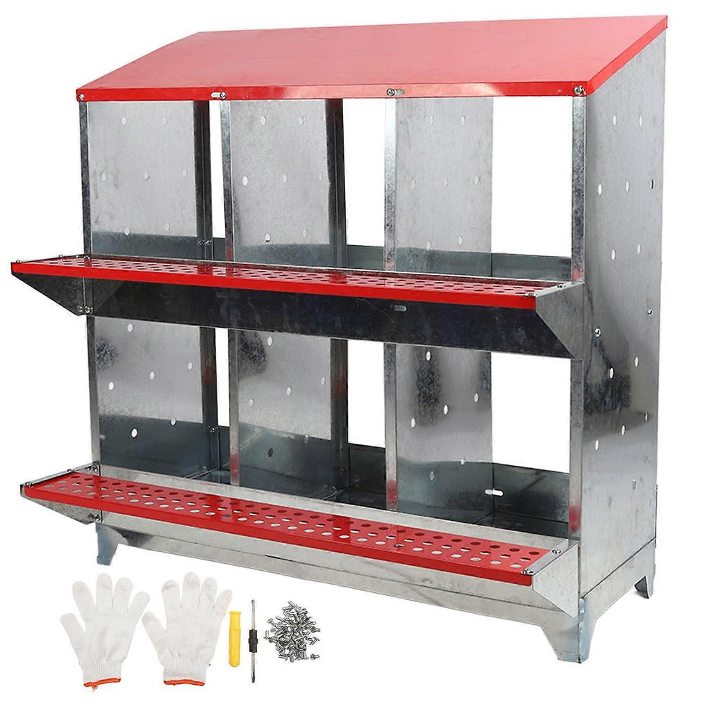 Feature: 1. Chicken Nesting Box: The chicken nest box is a must have for all poultry enthusiasts who want to establish or maintain their sustainable local farms. The nesting box provides a clean, safe, and comfortable place for hens to nest. 2. Large Capacity: The sloping roof design prevents hens from perching on the top of the nesting box. 6 compartments can accommodate 30 hens and are equipped with side ventilation holes. The four feet have increased the height of the egg box to avoid moisture standing on the ground. 3. Premium Design: The nesting site of the chicken coop is made of rust resistant galvanized iron plate, which is durable and easy to clean. Each hole is approximately 12.4 x 13.5 x 15.7in, large and comfortable enough for the hen to stand and lie down. 4. Safe for Chicken: All exposed edges have been folded. Smooth corners are also very safe for chicken to get in and out, very suitable for farm and husbandry. 5. Easy Assembly: All accessories for assembly are included in the set, including screw, gloves, screwdriver and so on, so the assembly can be quickly completed. Specification: Item Type: Chicken Nesting Box Material: Galvanized Iron Plate Assembled Product Size: Approx. 94.5 x 97 x 35cm / 37.2 x 38.19 x 13.78in. Package List: 1 x Upper Cover1 x Bottom Plate4 x Isolation Plate2 x Mesh Plate4 x Metal Strip2 x Quadrilateral Metal Plate4 x Accessory1 x Screwdriver1 x Screw Kit1 x Pair of Gloves1 x User Manual