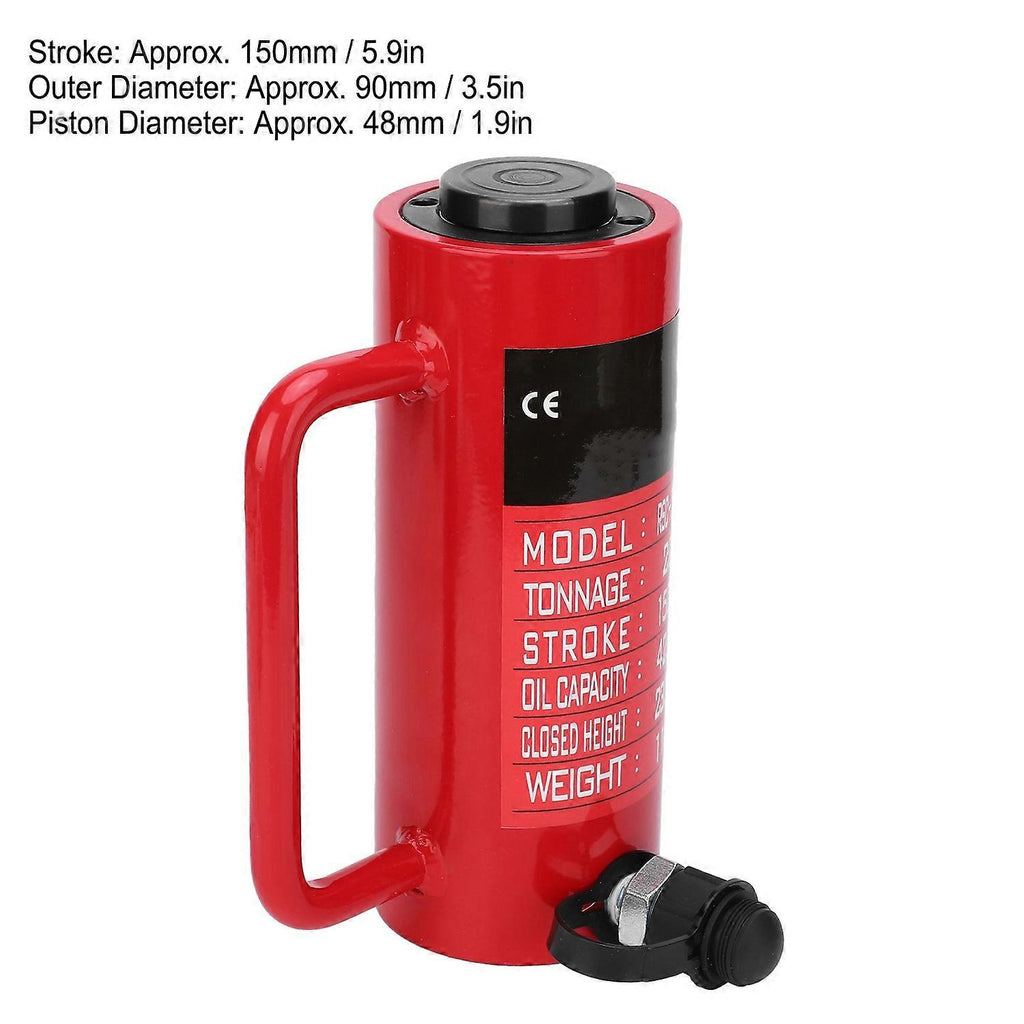 Feature: 1. The product is equipped with threaded ZG3/8in connector and dust cap 2. Finely manufacturing, painted surface possess strong corrosion resistance 3. Hydraulic cylinder is lightweight and easy to carry, piston return the oil automatically 4. The surface of the piston is chrome-plated to extend the service life 5. Multi?angle use, suitable for use in various small spaces, fast and convenient Specification: Item Type: Hydraulic Cylinder Output: 20T Stroke: Approx. 150mm / 5.9in Oil Storage Capacity: 423CC Model: RSC-20150 Color: Red Material: 45 steel Outer Diameter: Approx. 90mm / 3.5in Piston Diameter: Approx. 48mm / 1.9in Uses: Often used in electricity; chemical industry; machinery; industry, etc.. Package List: 1 x Hydraulic Cylinder1 x User Manual Note: Please note that the new type and old type of this product will be sent randomly, and make sure you will not mind before ordering.