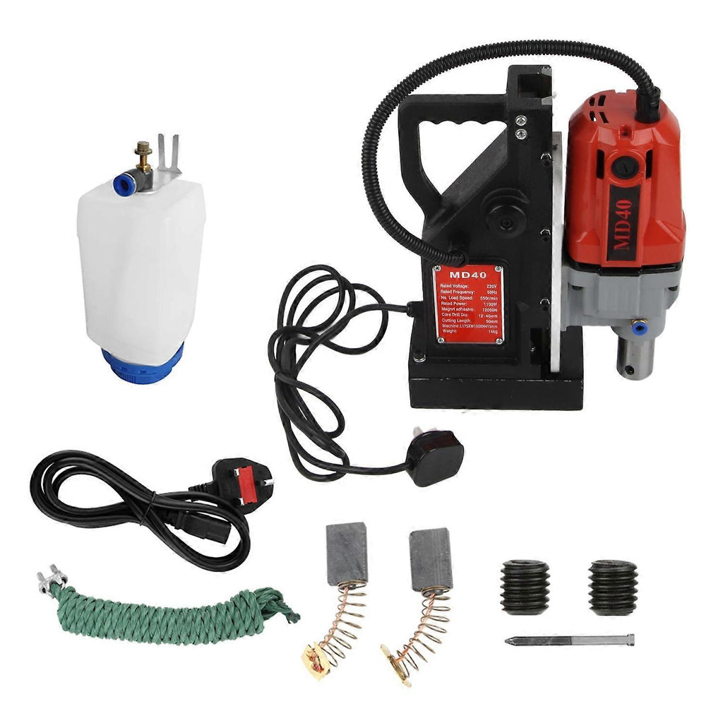 Features: Function: after the base is energized, it will be magnetized and can be attracted onto the iron plate. When working at high altitude or on the slope, used for drilling. Large power: Even when drilling through a thick metal hole, the power of the magnet ensures that the machine does not move The solid base provides more leverage than a hand drill, allowing the user to create precise holes. The magnet also allows the drill bit to be inverted under a piece of metal. The 1100W motor can provide the most demanding drilling operation. The maximum drilling depth is 50mm and the maximum drilling diameter is 13mm. Specification: Model: MD40 Power: 1100W No-load speed: 550RPM Electromagnetic suction: 12000N Twist drill: Dia.1.5-Dia.13 Spindle diameter: 35mm/1.4in Hole opening:Dia.12-Dia.40 Opening depth: 50mm/2in Stroke:180mm/7.1in Weight: Approx.12900g/455oz Package list: 1 x Magnetic Drill Press 1 x Safety Rope 1 x Kettle 1 x Thimble 1 x Hex Wrench 2 x Fastening Screw 2 x Carbon Brush 1 x Power Cable Note:Please note that the new type and old type of this product will be sent randomly, and make sure you will not mind before ordering. .