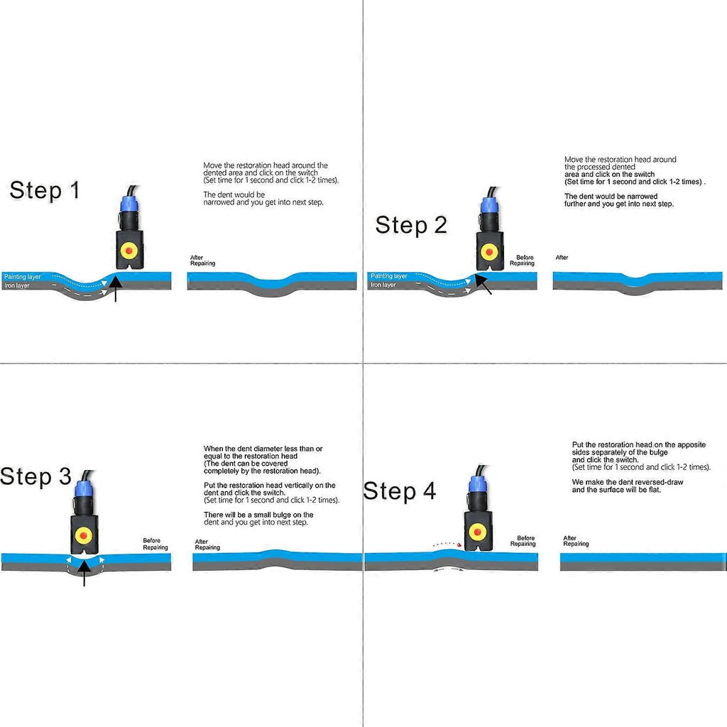 3. ??Easy to Use??It is suitable for beginners and professionals alike. No need additional and extra material, it will remove a variety of soft and small dents easily by flameless heating the panel behind the paint from the outside of the panel, relieving the stress holding the dent and lifting the dent through induction thermal expansion, especially in hard-to-reach areas, or areas difficult to get behind.