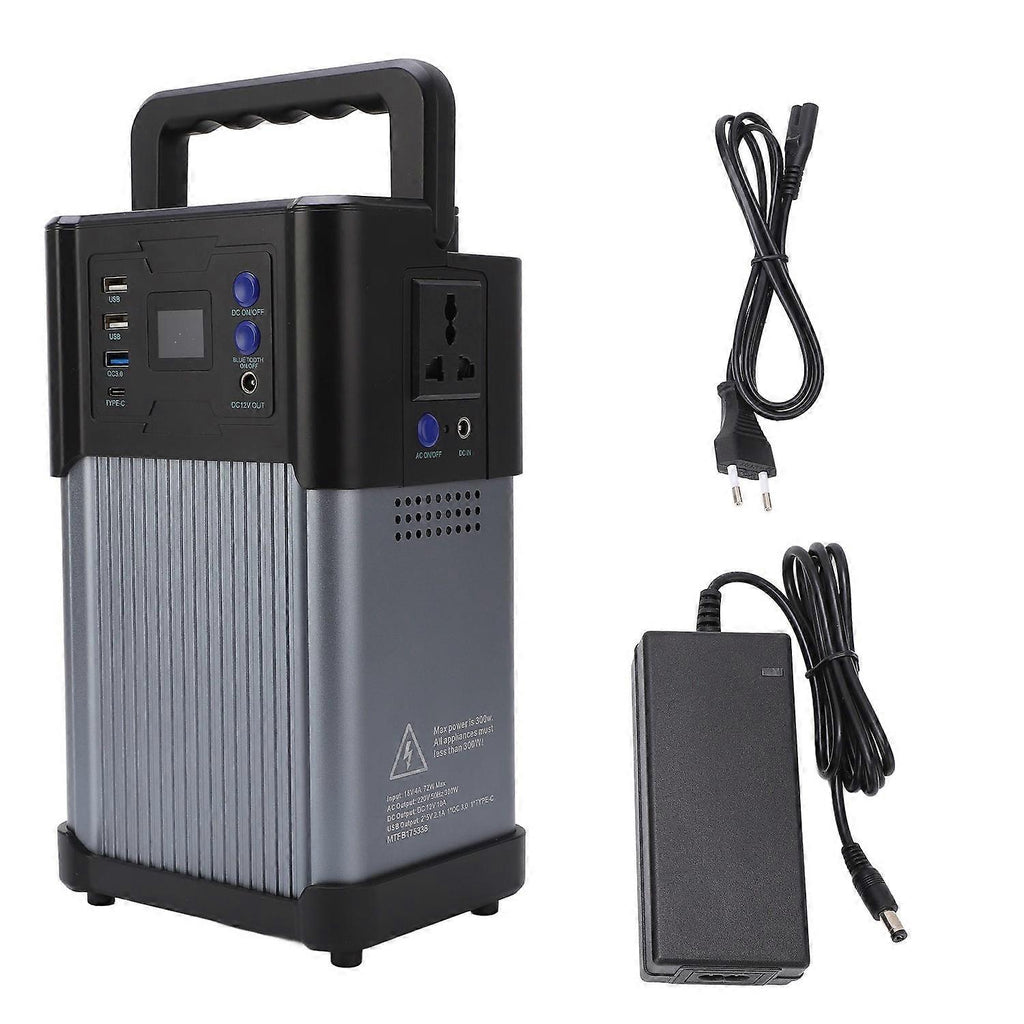Feature: 1. Excellent Performance: Professional manufacturing, exquisite workmanship, low power consumption, stable performance and high reliability. 2. Multifunction: With 2 USB output, 2 way 12VDC DC output, 1 way QC3.0 fast charge, 1 Type C output, solar charging and wireless charging. 3. Safety Protection: Built in short circuit, overload, over current, over voltage, over temperature protection, etc, prevent electric leakage. 4. Large Capacity: With large capacity 82500mAh lithium ion battery, portable power station is powerful enought to charge plenty of smart electronics. 5. Wide Application: 300W portable generator is suitable for home, office, outdoor, night market, car emergency, and so on, with bluetooth speaker. Specification: Item Type: Portable Power Station Material: Metal and ABSBattery: Ternary lithium battery 82500mAh(delivered with built in battery)Input Charging: DC18V/4A Charging time: DC18v: 6-7 hours AC Output Power: 300wBulb Type: LED lamp Power Indicator: LED control panelService Life: > 500 times Pure sine wave inverter output, support maximum continuous discharge 300W. 1 Wireless charging 1 Bluetooth speaker 2 USB 5V/2.1A(Maximum:3.1A) output; 2 way 12VDC DC output 1 way QC3.0 fast charge (4-9V/ 2.1A); 1 x Type C outputSupport 15-18V solar charging. Fitment: Universal for various environment . Package List: 1 x Portable Power Station1 x User Manual1 x Power Adapter1 x Plug Note: Power supply is divided into 110 and 220v, two kinds of AC output is not the same, 110v family AC power of the country must only use 110v, 220v must only use 220v.