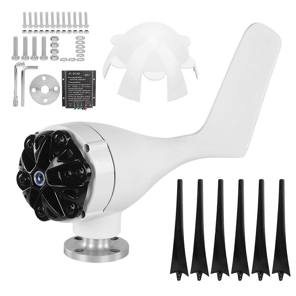 Feature: 1. Professional wind turbines has a slow startup speed; high wind energy utilization; beautiful appearance; low vibration. 2. The 6?blade wind turbines adopts a humanized design, which is easy to install, maintain and repair. Used for boats, terraces, cabins or mobile houses charging, etc. 3. This 6 precise blades, combined with optimized design of aerodynamic shape and structure, can increase annual power generation. 4. The generator adopts a permanent magnet rotor alternator with a special stator design, which effectively reduces the drag torsion. 5. This AC permanent magnet generator makes the wind generator and the generator match well and improves the reliability. Specification: Item Type: Professional Wind TurbinesItem Type: Windmill Turbines GeneratorRated Power: 800W Starting Wind Speed: 2.0m / s Rated Wind Speed: 12m / s Survival Wind Speed: 50m / s Number of Blades: 6Pcs Blade Length: Approx. 550mm / 21.7in Blade Material: Nylon fiber Generator: 3-Phase AC permanent magnet synchronous generator Controller System: Electromagnetic/yaw Adjustment Method: Automatic adjustment of wind direction angleWorking Temperature: -40??-80??. Package List: 1 x Motor6 x Blade1 x Controller1 x Blade Cover1 x Gasket1 Bag Fastening Kit