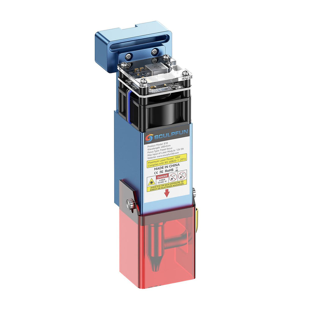 Features: Wide Compatibility: Design with widely compatible structural connection device, which can be well adapted to different laser engraving and cutting machines, 3D printers, CNC milling machines, etc. It can be installed on a variety of brand machines, such as SCULPFUN S9/S6pro/S6??ATOMSTACK A5/A5Pro, ORTUR(12V Version) laser engraving machine, or other DIY type machines. Powerful High-Speed Air Assist: S10 is equipped with a high-speed air assist nozzle which has an advanced fluid mechanics design to better utilize the air pressure. When using the same air compressor, the S10 spray airflow faster. For example, when using 30l/min, 0.03mpa air compressor, the S10 nozzle will spray high-speed airflow up to 14.5m/s, which greatly improve the cutting penetration and cutting efficiency. 10W laser Module: The S10 laser output power is increased to 10W, which is twice that of the S9. But S10 obtains the same ultra-thin laser beam with 0.08mm focus as S9, which means S10 has higher energy density, stronger cutting penetration and engraving capabilities. Powerful and Clean: S10 shows comparable to industrial-grade wood cutting performance: First, the cutting efficiency is greatly improved, cut faster; Second, the cutting penetration is stronger, and many high-density woods can be cut; Third, the cutting surface is cleaner, the powerful airflow blows away the residue, so that there is no stain on the surface of the cutting object. Great Design: Equipped with a detachable eye shield, which will not dazzle even without glasses. And easy to disassemble if you don't need it. And S10 laser module uses a common 12V/PWM modulation board, which can be adapted to common GRBL or CNC motherboards. (check out product pictures for more details.) Specification: Compatibility: SCULPFUN S9/S6pro/S6, ATOMSTACK A5/A5Pro, ORTUR(12V Version), ELEKSMAKER or DIY 3D printers, CNC machine Engraving Material: All Kinds Of Wood (Including Walnut, Cherry And Other High-Density Wood), MDF, Zigzag, Cardboard, Plastic, Leather, PCB Board, Aluminum Oxide, 304 Stainless Steel, Ceramic, Dark Stone Cutting Material: All Kinds Of Wood (Including Walnut, Cherry And Other High-Density Wood), Mdf, Acrylic Board, Cardboard, Non-Woven, Bamboo, Leather, Some Plastic Boards, PCB Boards Circuit Board Size: 40x40mm Circuit Board: 12V/PWM Modulation Board Input voltage: 12V Max Input of laser Module: 12V 5A Wire Rod: HY2.0, 3Pin Terminal (3-core cable, A: PWM +, B: GND, C: VCC ). Fan: 12V 0.15A 4020 fan Fan Speed: 15000 rpm Operating Temperature: -20 ?? to 70 ?? Package weight: 0.85kg/30oz Packing size: 22.7x13.6x9.5cm/8.9x5.3x3.7in Tip: How to judge whether the S10 laser is suitable for use? You need to pay attention that the input voltage of the S10 laser is 12V, and the S10 is a 3pin interface, you can check the detailed pictures. Note: ?? Because of the powerful laser of S10, it is forbidden to run the engraving machine unattended. Pause it if you're not around. ?? For detailed machine instructions, please refer to the manual for parameter settings. ?? When operating the laser engraving machine, please install the laser protective cover; if it is not installed, you need to wear goggles. ?? Do not touch the laser with your hands, otherwise you may burn your hands. ?? Please avoid strong impact on the machine. ?? It is forbidden for children under 14 years old to use this product, and children over 14 years old need adult attended. ?? Do not use the laser directly on any specular reflection object, which may cause injury to the operator or burn the laser. Packing List: 1 x 7.5mm Inner Diameter Air Tube 1 x Acrylic Protective Cover 1 x S10 Laser Head 1 x Multifunctional Connector 1 x 50mm Measuring Column 1 x Screw And Tool Kit