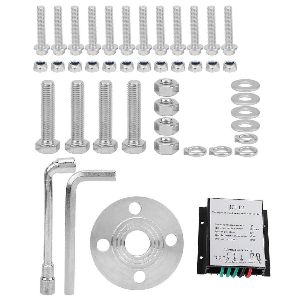 Feature: 1. The small wind generator has a slow startup speed; high wind energy utilization; beautiful appearance; low vibration. 2. This 6?blade windmill generator adopts a humanized design, which is easy to install, maintain and repair. Used for boats, terraces, cabins or mobile houses charging, etc. 3. 6 Precise blades, combined with optimized design of aerodynamic shape and structure, can increase annual power generation. 4. This generator adopts a permanent magnet rotor alternator with a special stator design, which effectively reduces the drag torsion. 5. The AC permanent magnet generator makes the wind generator and the generator match well and improves the reliability. Specification: Item Type: Windmill Turbines GeneratorRated Power: 800W Starting Wind Speed: 2.0m / s Rated Wind Speed: 12m / s Survival Wind Speed: 50m / s Number of Blades: 6Pcs Blade Length: Approx. 550mm / 21.7in Blade Material: Nylon fiber Generator: 3-Phase AC permanent magnet synchronous generator Controller System: Electromagnetic/yaw Adjustment Method: Automatic adjustment of wind direction angle.Working Temperature: -40??-80?? Package List: 1 x Motor6 x Blade1 x Controller1 x Blade Cover1 x Gasket1 Bag Fastening Kit Note: 1. There is an anti?loosening device in the front section of the locking nut of the installation blade, which will be tight when screwed, but must be screwed to the end.2. The height of the wind turbine needs to reach 6 meters.3. Installation of wind turbines need to try to install in the area of high wind energy density.