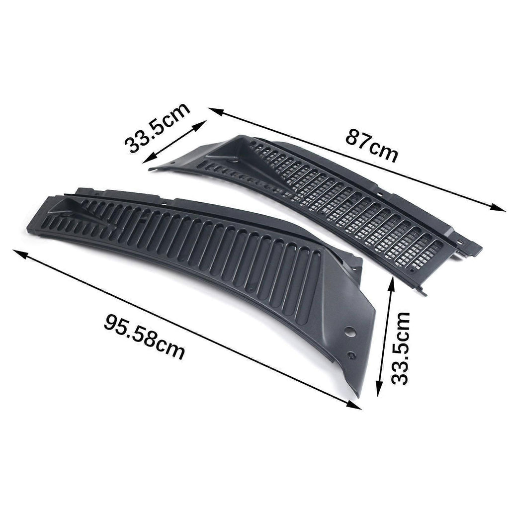 Description: Compatibility: This Windshield Cowl Panel Cover is specifically designed for Ford 1999-2007 F250 F350 models, ensuring a nice fit and seamless integration. Material: The Windshield Cowl Panel is made from quality plastic material that is sturdy, wear resistant, and built to last. Dimensions: The longer size of the Cowl Panel Cover measures 95.58cmx33.5cm/37.63inchx13.19inch while the shorter size measures 87cmx33.5cm/34.25inchx13.19inch, offering comprehensive coverage for your vehicle's windshield. Package Contents: The package includes a pair of water guide panels in the Windshield Frame Cover set to meet all your installation needs. Functionality: The Windshield Hood Panel Cover serves as a practical accessory that helps protect your engine and effectively guides water away from it, enhancing the longevity and performance of your vehicle's engine components. Specification: Material: Plastic Size Chart: Long Size: 95.58cmx33.5cm/37.63inchx13.19inch Short Size: 87cmx33.5cm/34.25inchx13.19inch Package Includes: 1 Pair Cowl Panel Cover Note: Please allow slightly errors 1-2cm differences due to manual measurement.