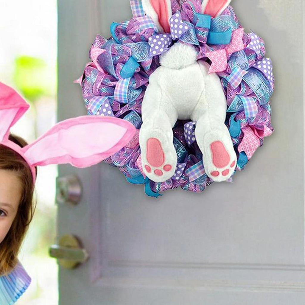 2pcs Easter Bunny Wreath Door Easter Spring Garland Decor Welcome Wreath