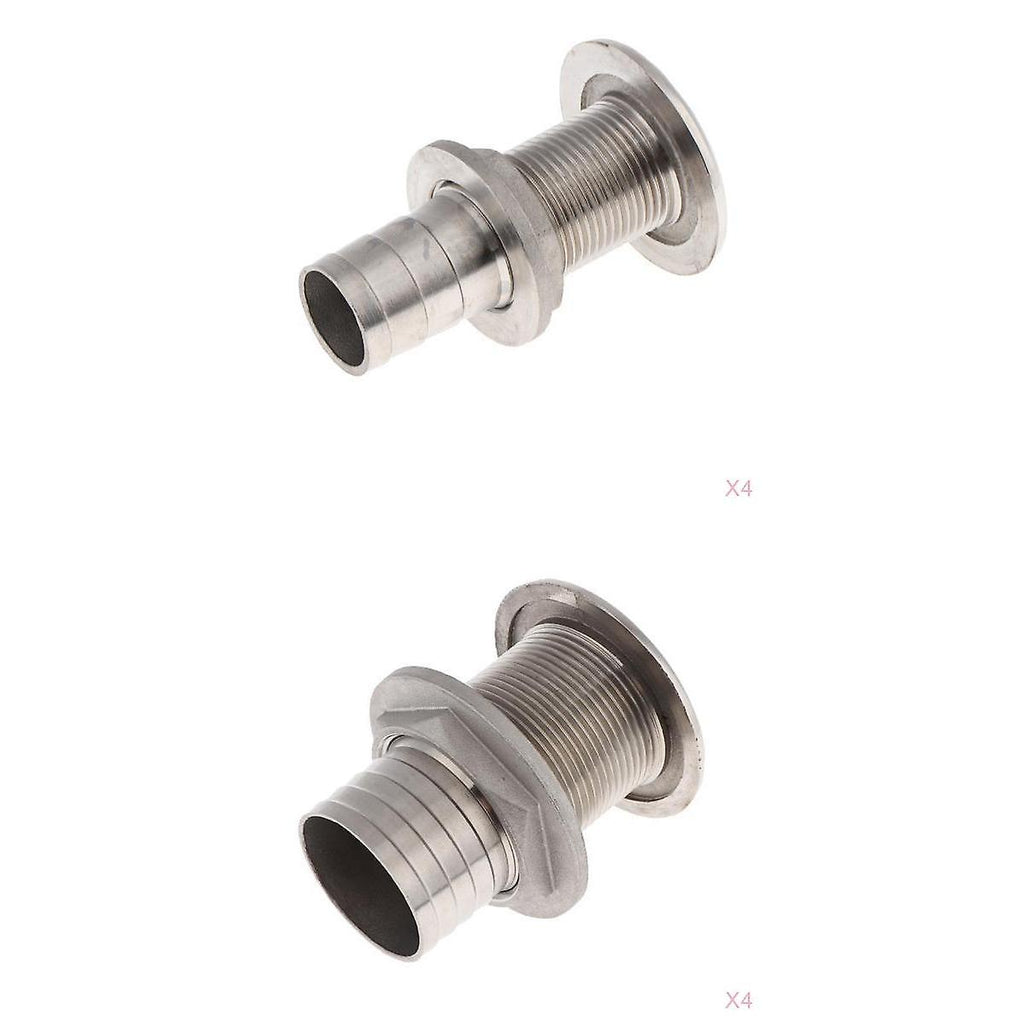 8x Boat Thru Hull Fitting/Drain Hose Barb Marine 316 Stainless Steel 19/38mm