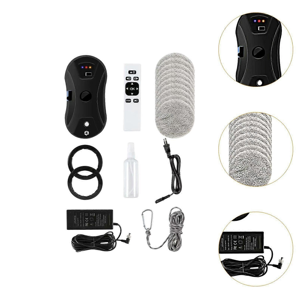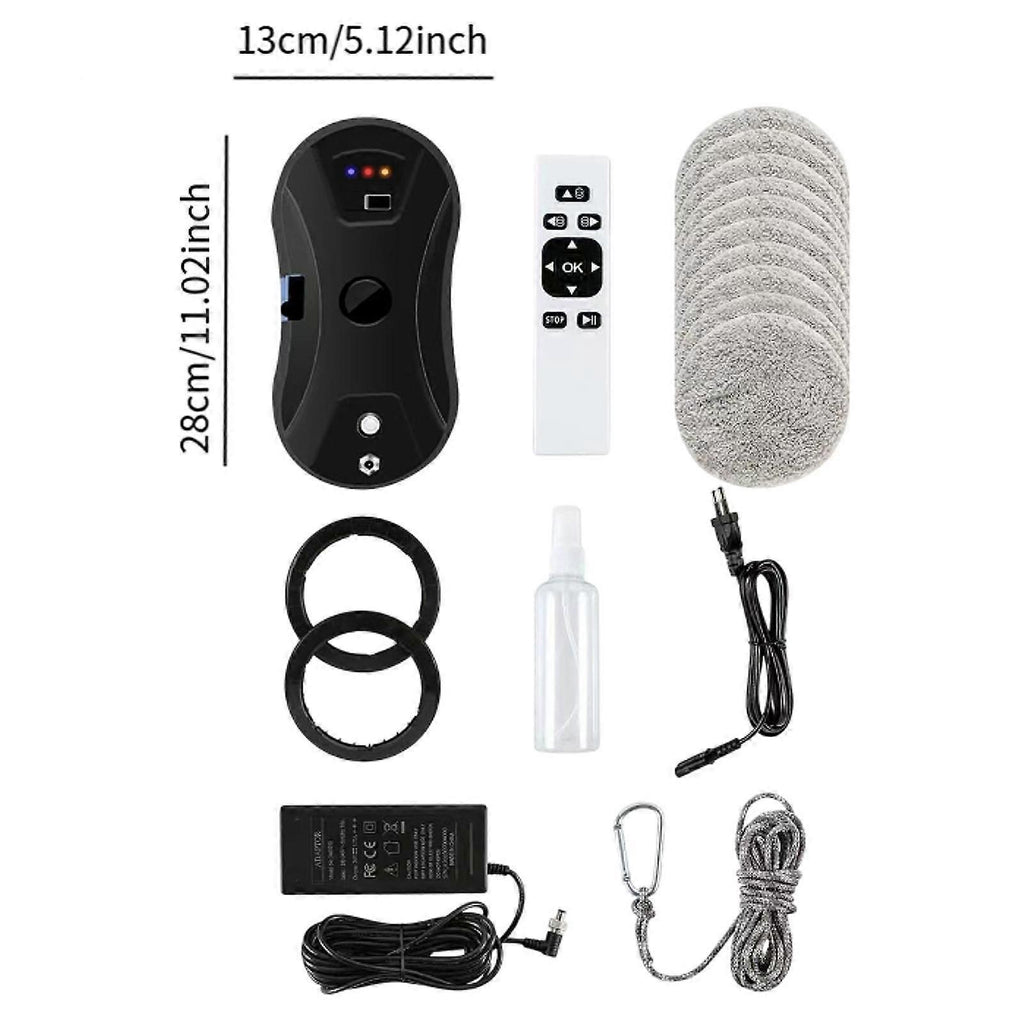 Description: Efficient Cleaning with Double Spiral Heads: This window cleaning robot features double spiral cleaning heads equipped with an automatic water spray function, ensuring a thorough and spotless cleaning for your window. Packing includes 1 window cleaning machine, 1 remote control, 10 cleaning cloth, 1 power cord, 1 charger, 1 instruction manual, 1 safety rope, 2 cleaning rings, 1 water bottle Powerful Suction for Secure Operation: With a suction power of 2800PA, this automatic window cleaner firmly adheres to the window surface. Please note that the device must be connected to a power source during operation for optimal performance Features: The window cleaner robot designed with multiple safety measures, including an automatic stop function upon completion of cleaning tasks, high strength safety rope, anti fall control algorithm, and automatic edge detection to prevent falls. Ensure the safety rope is securely attached during use User Friendly Remote Control Operation: Easily manage the cleaning process using the included remote control, allowing you to operate the device conveniently from a distance Versatile Use: This Window Cleaning Machine is suitable for use in homes, shops, hotels, schools, offices, etc., leaving your window brighter. Size:28 cmx13 cmx9 cm/11.02 inchx5.12 inchx3.54 inch Specification: Material: ABS Plug: EU Input voltage: 220vPower: 80w Suction: 2800PA Power off protection time: 20 minutes Control method: remote control Noise: 65db Border detection: automatic Water tank capacity: 30ml Power cord length: 4.5m Battery capacity: 500mAn Package Includes: 1 Intelligent Robot Window Cleaner 1 Remote Control 10 Cleaning Cloth 1 Power Cord 1 Charger 1 Instruction Manual 1 Safety Rope 2 Cleaning Rings 1 Water Bottle