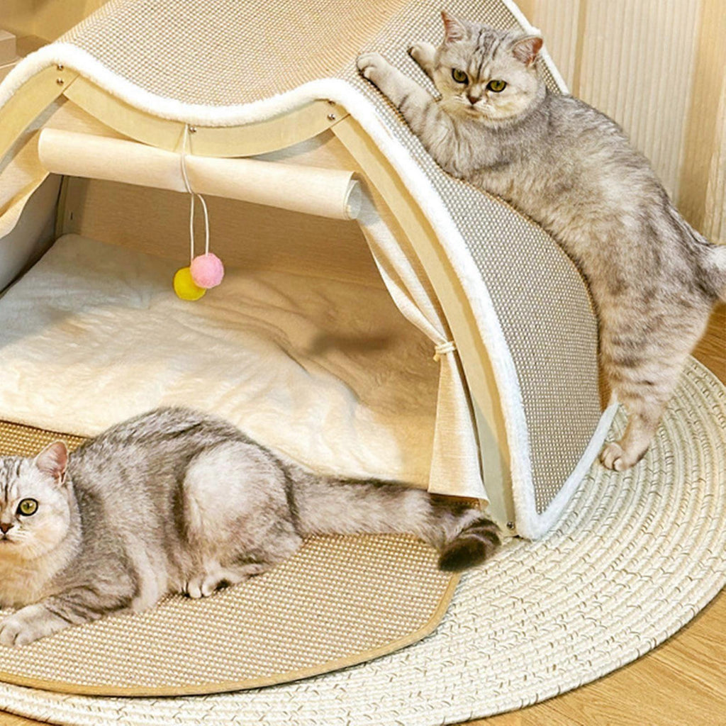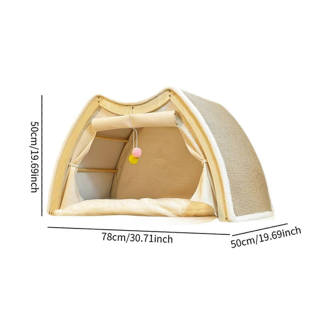Description: Sturdy Structure: This Cat House features a unique sisal design, offering your pet a tranquil resting space that doubles as their private playgroundWarm cushion: The winter cats nest is exquisitely crafted and sturdy in structure. It comes with a soft, comfortable and warm cushion for your lovely pet to play, rest or sleepSemi Enclosed Shell: The semi enclosed shell design provides a safe and snug environment for your pet while also safeguarding your furniture from potential damageFurniture protection: Equipped with a sturdy wooden scratching board, it satisfies your pet's scratching instincts and helps protect your furniture from scratchesWinter Nest: 30.71inchx19.69inchx19.69inch in size, this winter nest offers ample space for relaxation, ensuring warmth and comfort throughout the cold season Specification: Material:Wood Sisal Size Chart: 78cmx50cmx50cm/30.71inchx19.69inchx19.69inch Package Includes: 1 Pet Cat Nest Note: Please allow slightly errors due to manual measurement and different monitors.