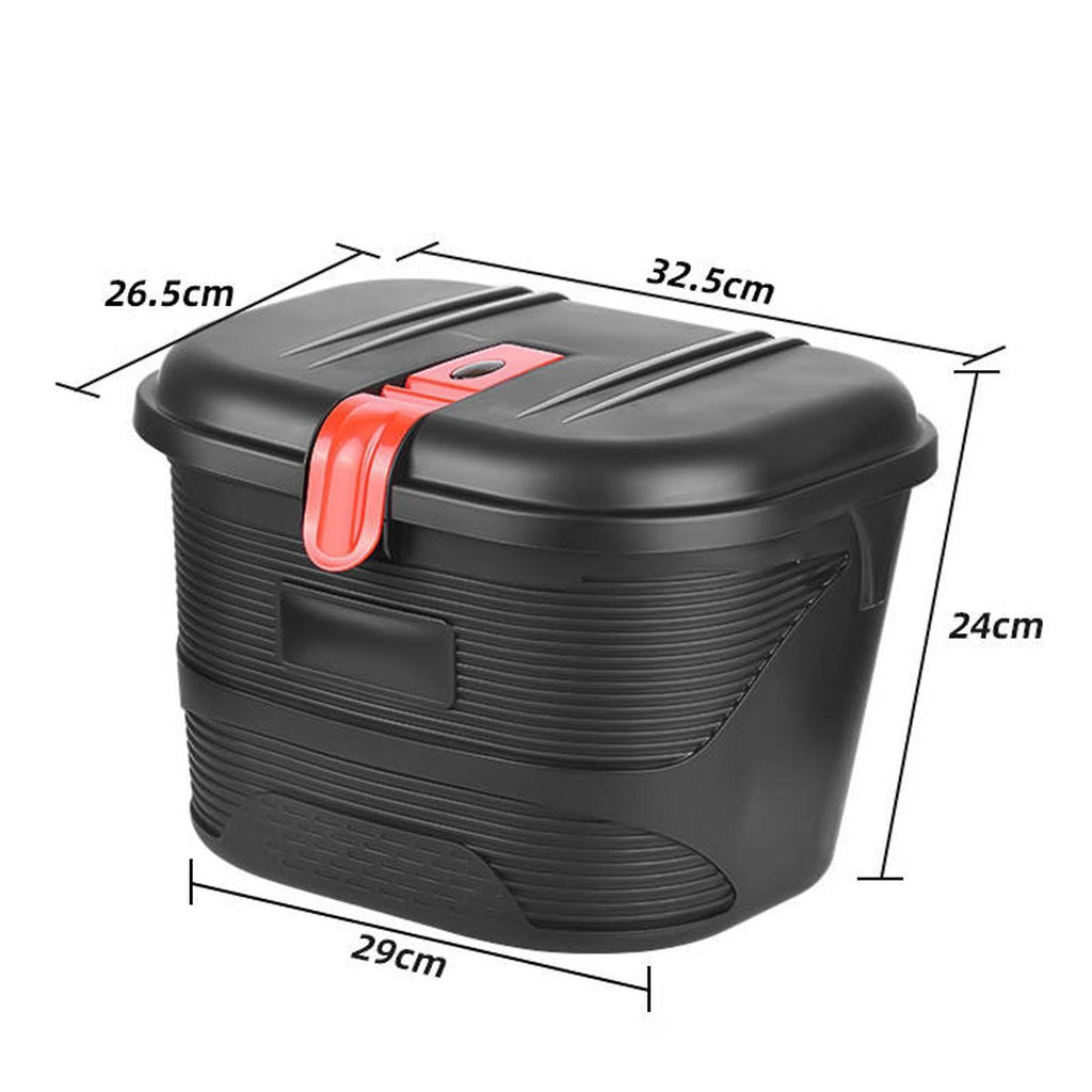Description: Large Capacity: With a 20L large capacity, this electric bike basket is designed to conveniently store helmets. It can easily accommodate electric bike helmets, bicycle riding helmets, and other miscellaneous items. The basket is and handy with a weight capacity of up to 10KG.Reliable Lock: The electric bike storage basket comes with an reliable lock and two keys for added security. This feature ensures the of your when it's not convenient to carry it around, providing peace of mind against lost.Waterproof and Dustproof: The electric bicycle cargo basket has been sealed for strong waterproofing capabilities. Whether in heavy rain or dusty conditions, your items stored in the basket will be well protected.Drainage Design at the Bottom: The bottom of the electric bicylce basket features a drainage design to prevent water accumulation during rainy weather, making it convenient for use.Premium Material: The electric bike basket is made from plastic material, in size 32.5cmx26.5cmx24cm/12.80inchx10.43inchx9.45inch, easy install, convenient using. Specification: Material: Plastic Size Chart: 32.5cmx26.5cmx24cm/12.80inchx10.43inchx9.45inch Package Includes: 1 Bike Basket