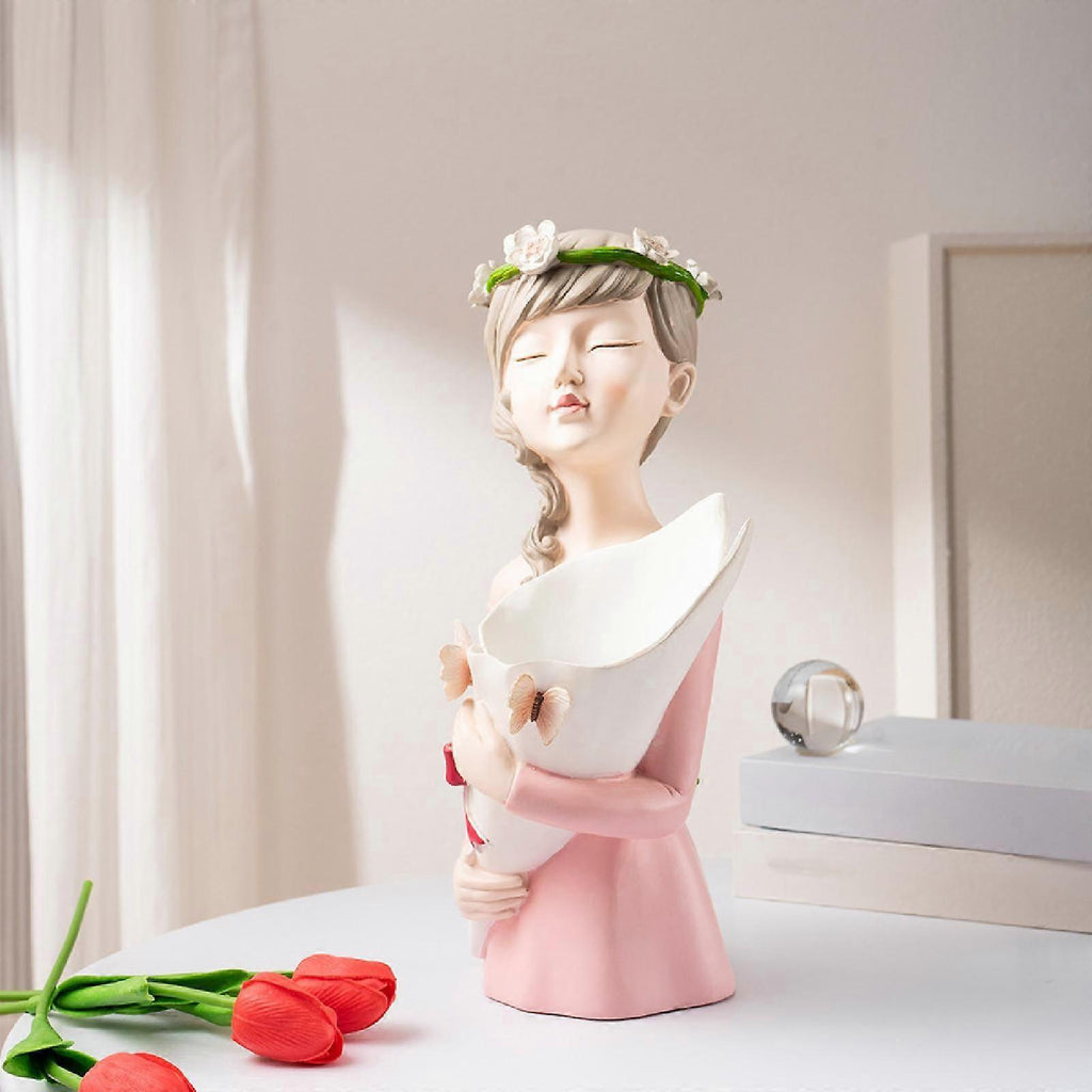 Flower Vase Girl Figurine Fashionable Statue Modern Desktop Vase for Bedroom