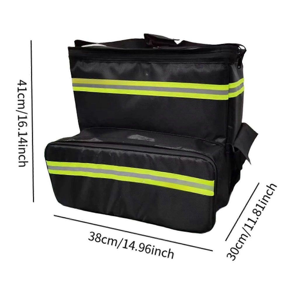 Description: Material: This Food Delivery Backpack is made from Oxford cloth, which is waterproof. The thermal coating ensures that your food stays fresh for longer periods. Portable: Our Insulated Hot food bags for Delivery Bike is designed specifically for transporting items like cola, burgers, sandwiches, beer, snacks, pizza or any other type of order. It's suitable for home delivery services. Multifunctional: This cool bag has multiple uses - it can be used to keep vegetables fresh, drinks cool and food warm. Design: The food bag is expandable for storing extra items, such as pizza, etc. The reflective strip ensures your safe while delivering orders. Size:The dimensions of the Delivery Bag Is 14.96inchx11.81inchx16.14inch. Specification: 38cmx30cmx41cm/14.96inchx11.81inchx16.14inch Package Includes: 1 Food Delivery Backpack Note: Please allow slightly errors due to manual measurement and different monitors.