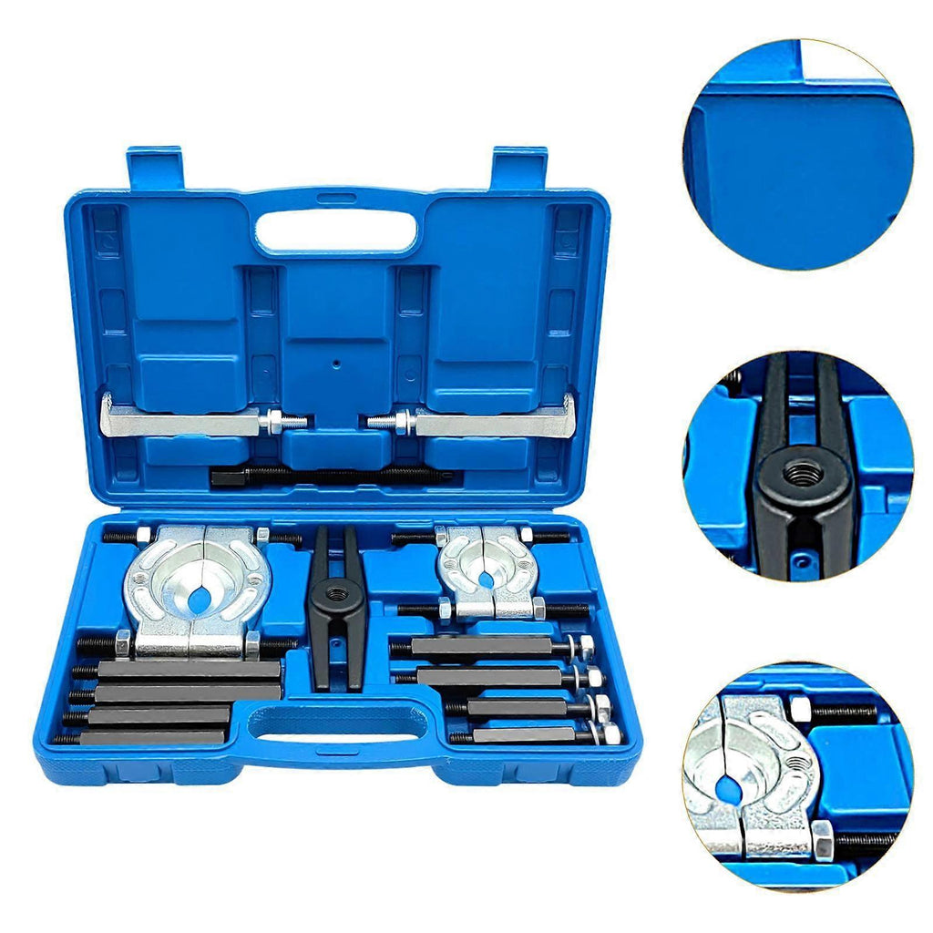 Description: Premium MaterialThe Bearing Puller Set is made of steel material, with a solid structure and durability, suitable for rough and difficult work, ensuring long term usability.14 Pieces Set5 Ton Capacity Bearing Separator Kit features 3 inch and 2 inch bearing separators, four sets of hexagonal push pull device legs, and a 5'' rod type puller head (with forcing screw).Wide ApplicationWheel Hub Axle Puller Set is suitable for a variety of pulling tasks, efficient, suitable for professionals or beginnersWith Storage BoxThe Heavy Duty Bearing Splitter Tool Kit comes with a blue plastic storage box with a snap on slot design inside, which effectively prevents the tool from moving and is convenient for storing and carrying your tools.Product SizeThe size of the Bearing Splitter Remover Tool Kit is 36cmx23cmx6cm/14.17inchx9.06inchx2.36inch Specification: Material: Steel Size Chart: 36cmx23cmx6cm/14.17inchx9.06inchx2.36inch Package Includes: 1Bearing Puller Set Note: Please allow slightly errors 1-2cm differences due to manual measurement.