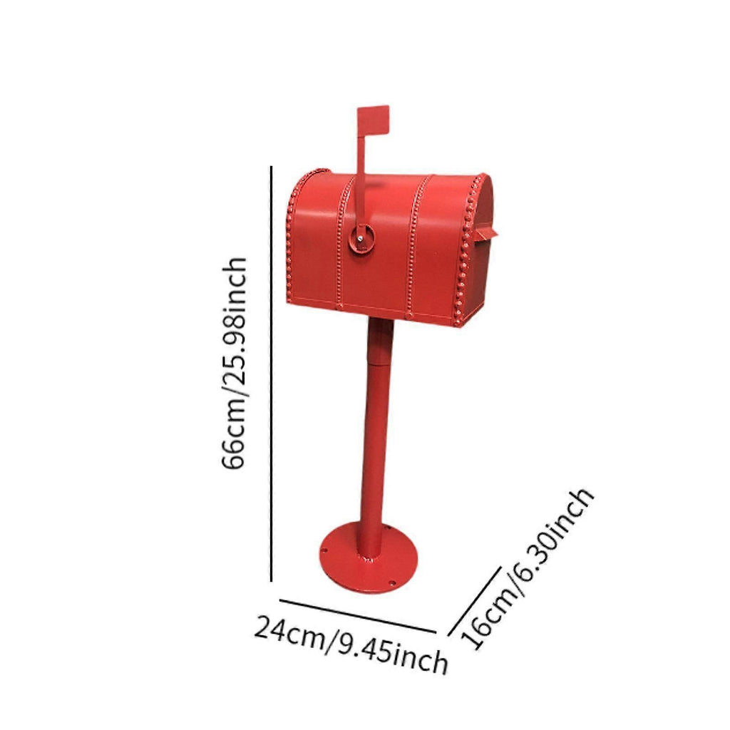 Description: Material: This Mailbox is made of iron, ensuring its durability and longevity.Dimensions: The dimensions of this iron mailbox are 9.45inchx6.30inchx25.98inch.Design: The vintage design of this freestanding mailbox adds a touch of elegance to any villa or outdoor space.Weatherproof: This mailbox is designed to withstand rain and other outdoor elements, making it suitable for keeping your newspapers and letters dry.Package Includes: Each package contains a red mailbox, ready for easy installation and use. Specification: 24cmx16cmx66cm/9.45inchx6.30inchx25.98inch Package Includes: 1?Mailbox Note: Please allow slightly errors 1-2cm differences due to manual measurement.