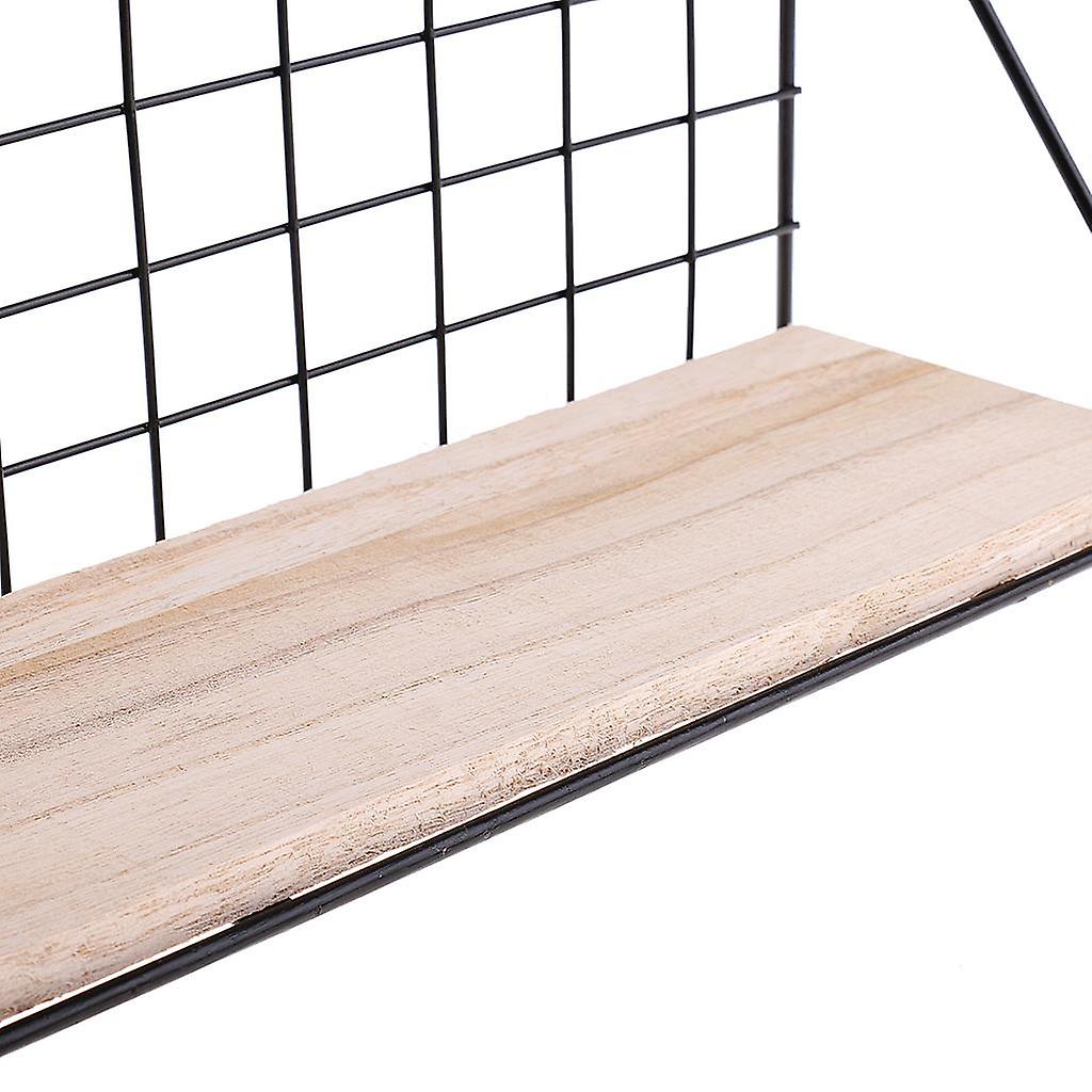 Pack 3 Metal & Wooden Wall Grid Hanging Shelf Furnishing Storage Rack Holder
