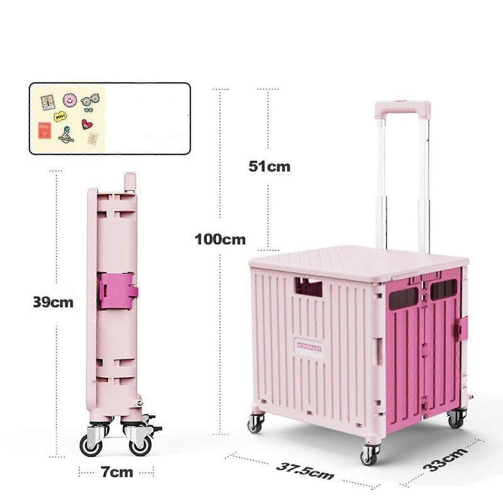 (Pink) Folding Shopping Cart 45 L Capacity for Fishing Grocery Buying Daily Storage Green
