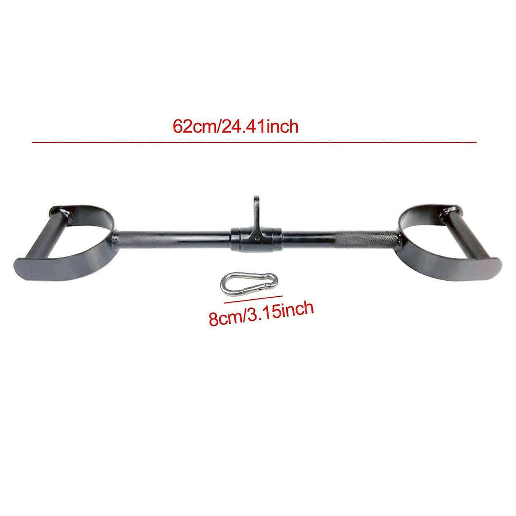 Description: Versatile Workout Tool: This high position pull down handle is designed to provide a comprehensive workout, making it ideal for targeting your triceps, biceps, back, shoulders, and chestSteel Construction: Crafted from quality steel, this LAT Pull Down Bar ensures long time durability and reliability during strong workout sessionsOptimal Grip Design: Press Down Bar Features a nonslip grip that enhances your control and stability while performing various exercisesCompact Size: With a length of 62 cm/24.4 inch, this Cable Machine Attachment is sized to fit most gym setups without taking up too much spaceSingle Package Inclusion: Comes with 1pc pull down bar and 1 hook in the package for easy integration into your existing fitness equipment collection Specification: Material: SteelLength: 62cm/24.41inchHook length: 8cm/3.15inch Package Includes: 1LAT Pull Down Bar1 Hook Note: Please allow slightly errors 1-2cm/0.39-0.79inch differences due to manual measurement.