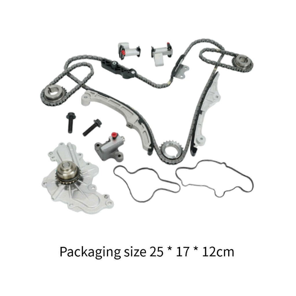 Description: Item Type: Timing Chain KitFitment:This timing chain kit is fit for Ford Edge Flex Fusion Taurus for Lincoln MKS MLT MKXPart Number:This timing chain kit part number is AT4Z-6306-A? 7T4Z-6256-A? 7T4Z-6268-CA? AT4Z-6268-C? 7T4Z-6K254-BA? 7T4Z-6K254-AA? BA5Z-6L266-B BA5Z-6K255-A? BA5Z-6B274-A? AT4Z-6K297-A? AT4Z-6K297-BGreat Material : This timing chain kit with great metal material, ensures stable performance and is used long time.Easy installation:The timing chain kit no complicated tools required, convenient for use. Specification: Material: MetalFitment:?For FORD EDGE 3.5L 2007-2010For FORD FLEX 3.5L 2010-11/29/2010For FORD FLEX 3.5L 2009-10/13/2010 For FORD FUSION 3.5L 2010 For FORD TAURUS X 3.5L 2008-2009 For FORD TAURUS 3.5L 2010-10/06/2010For FORD TAURUS 3.5L 2008-11/29/2010 For LINCOLN MKS 3.5L 2010-10/06/2010For LINCOLN MKS 3.7L 2009-10/29/2010 For LINCOLN MKT 3.5L 2010-2011 For LINCOLN MKT 3.7L 2010-10/22/2010 For LINCOLN MKX 3.5L 2007-2010 Size Chart: Packing Size:?25cmx17cmx12cm/9.84inchx6.69inchx4.72inch Package Includes: 1 Set?Timing Chain Kit Note: Please allow slightly errors 1-2cm differences due to manual measurement.