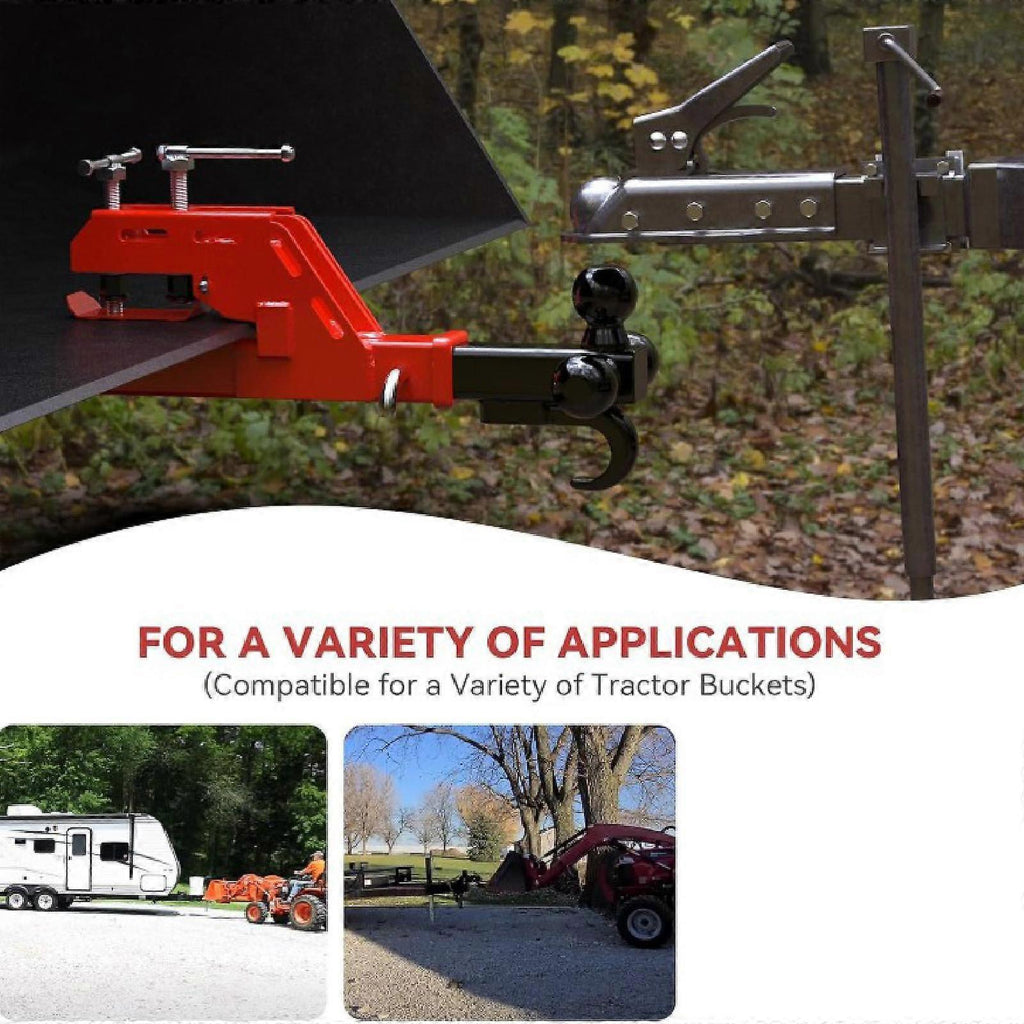 Description: Product List: 1 trailer hook, package size 45cmx23cmx9cmCarbon steel material: Tractor Clamp on Trailer Hitch is made of carbon steel, suitable for outdoor use, strong load bearing capacity, and meets heavy duty work needsWide applicability: Tractor Clamp on Trailer Hitch is suitable for scenes such as industry, agriculture, construction, as well as boats, RVs, trailers, camping accessories, etc., and is suit for all 2 inch hook plug insAnti break design: Tractor Clamp on Trailer Hitch side panels are thickened, and the anti slip part and anti slip double screw design ensure reliability during traction and prevent the receptor from breakingQuick installation: Tractor Clamp on Trailer Hitch can be easily fixed on the bucket of the tractor, saving installation time and improving work efficiency Specification: Material: Carbon steel Size Chart: Packaging 45cmx23cmx9cm/17.72inchx9.06inchx3.54inch Package Includes: 1 Tractor Clamp on Trailer Hitch