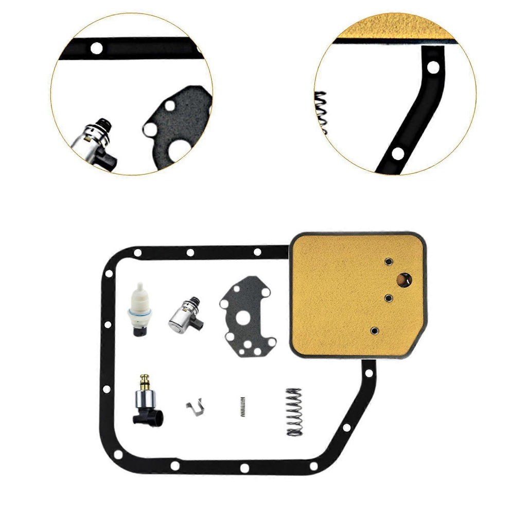 Description: Part Number: 42RE, A518, 46RE, 47RE, 48RE, 44RE, A500, 42RH,4617210,04800879,56041403AA,3515996Material: Transmissions Solenoid Set is made of metal, which is strong, wear-resistant, can be used for a long time, and is not easy to damage.Function: Transmissions Solenoid Valves Set realizes the normal work of the transmissions by controlling the switching of the oil circuit and the pressure regulation of the oil circuit flow.Easy to install: Solenoid control valve has a simple design and complete accessories, and can be installed directly without complicated steps.Applicable: Solenoid control valve is suitable for directly replacing the transmissions solenoid valve kit. Please confirm whether the model is suitable before purchasing.ForDodge Specification: Material: Metal Size Chart: Package Size: 19cmx19cmx8cm/7.48inchx7.48inchx3.15inch Package Includes: 1 Transmissions Solenoid Valve1 Sensor1 Spring1 Small Paper Pad1 Gasket2 Small Accessories Note: Please allow slightly errors due to manual measurement and different monitors.
