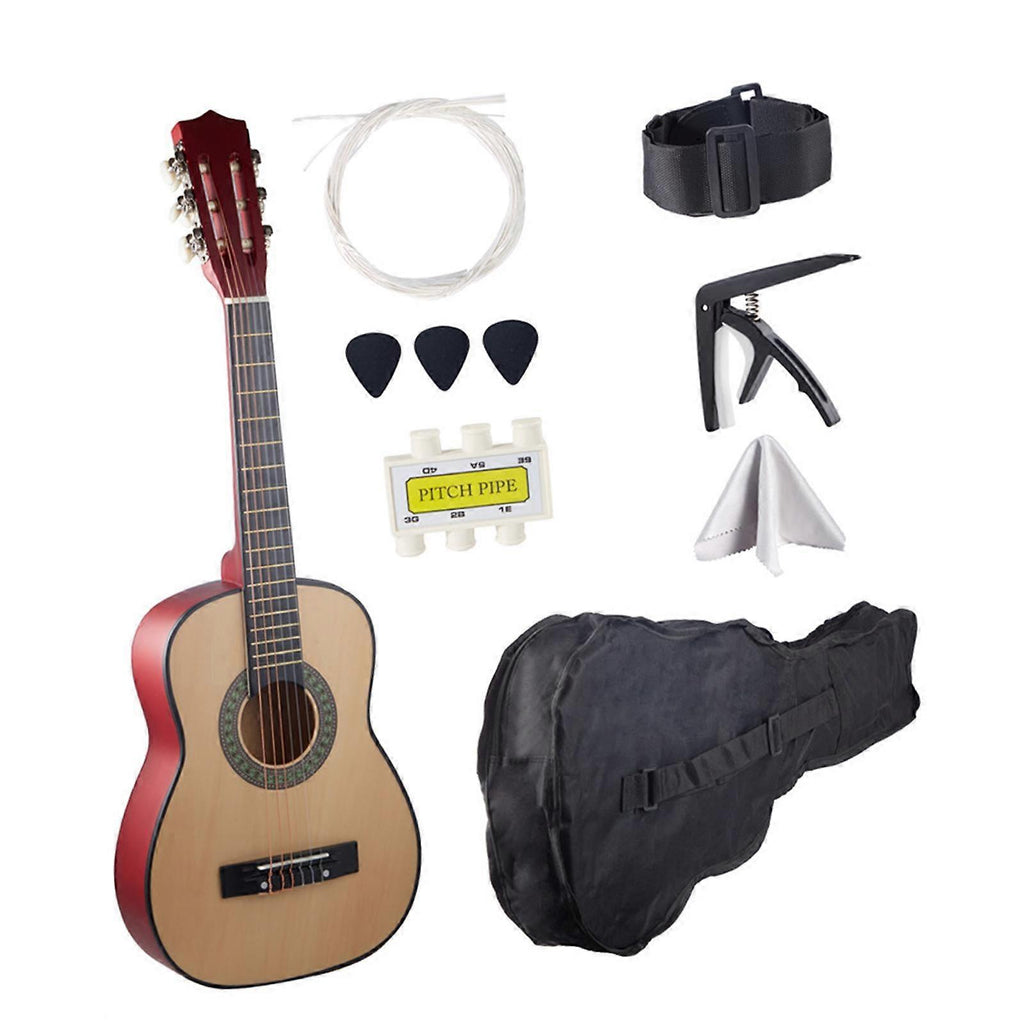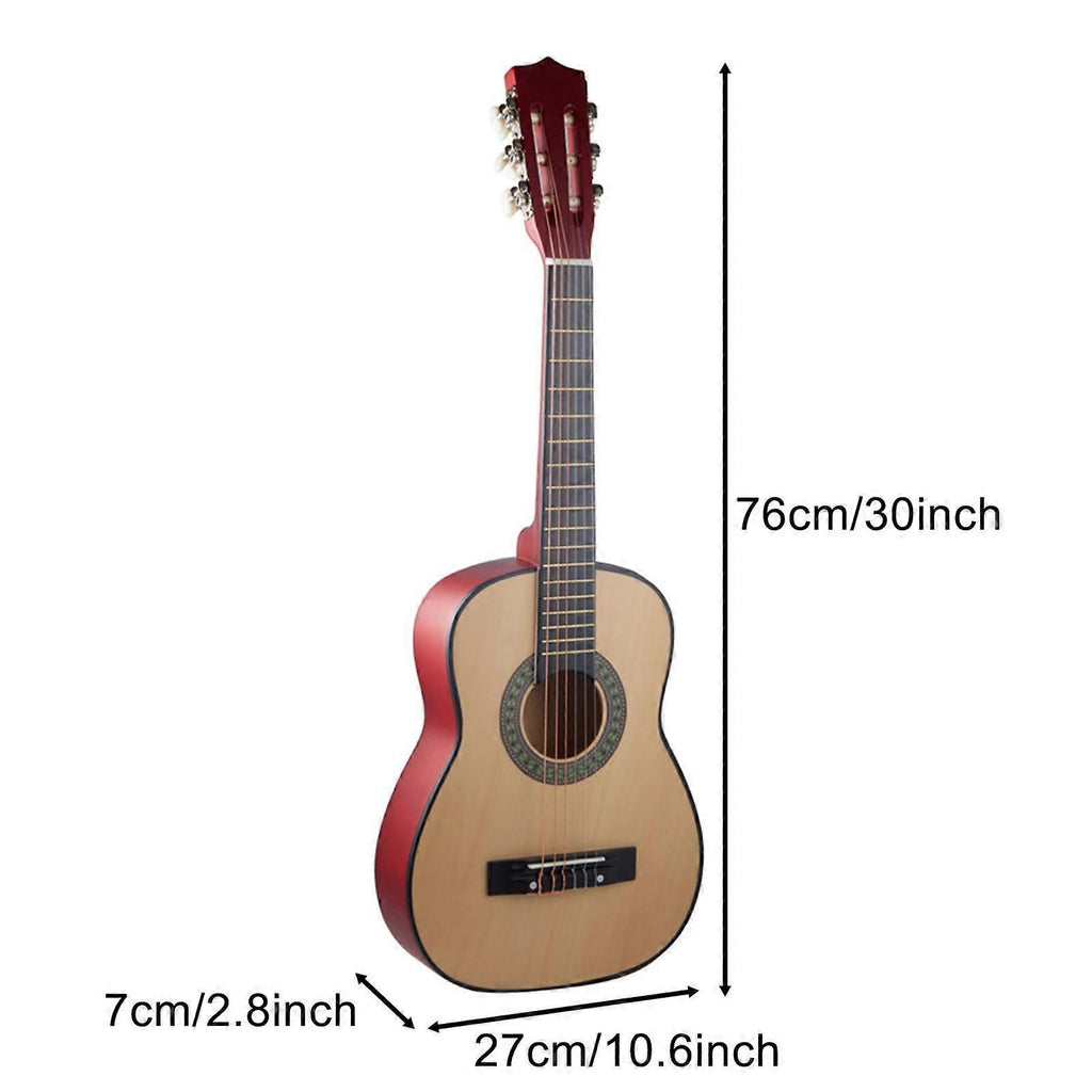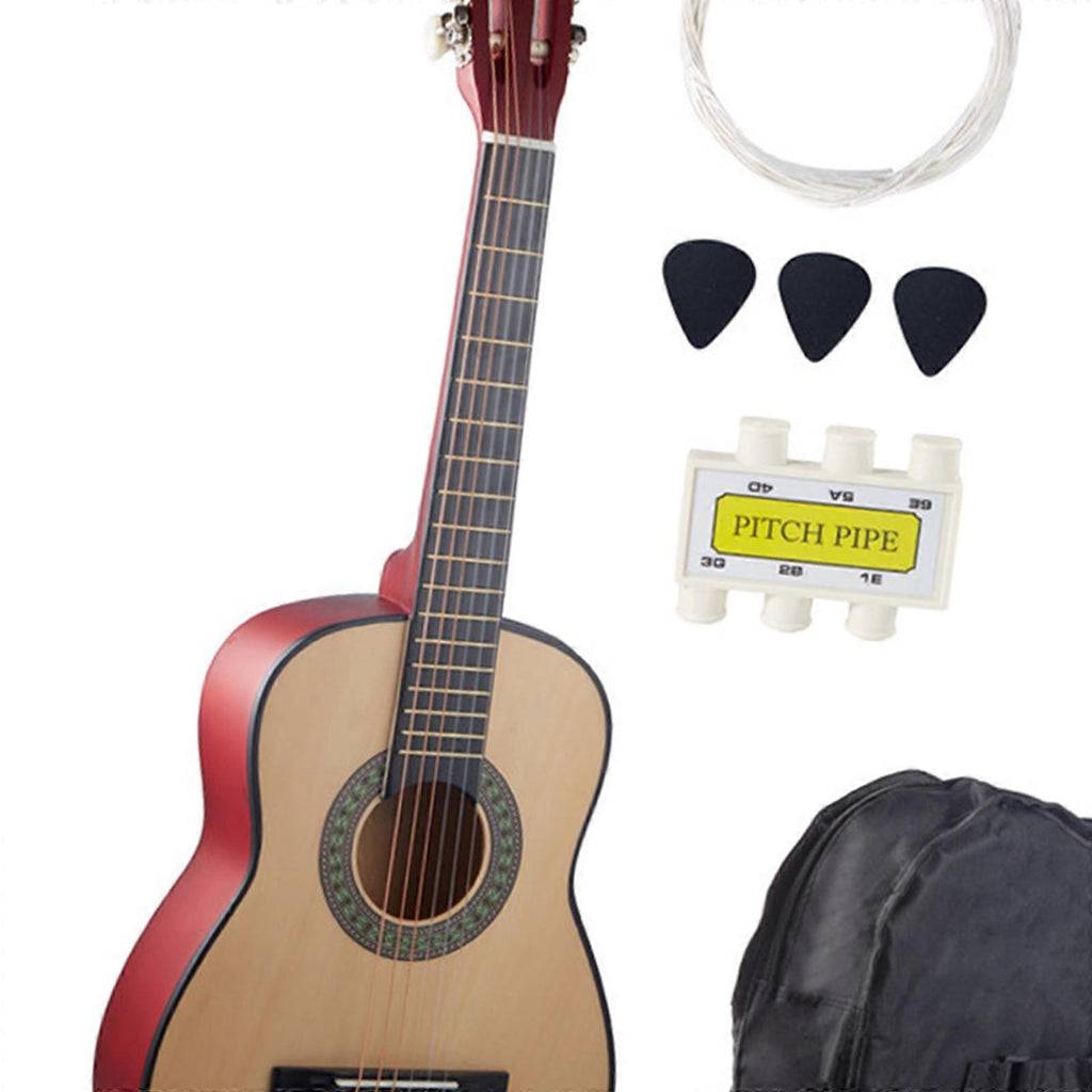 Description: Material: This 30 inch classical guitar is? made of basswood panels, long term use .Ideal Gift: This guitar set is the instrument gift for boys, girls, students, friends, children and adults who want to play music. It can serve as a birthday/holiday gift?Portable:kids guitar child guitar? for Kids, portable and light weight, easy to carry out.Design: Six string guitar beginner music instrument for kids adults beginners educational learning guitarPackage Includes:?1 set wood guitar with case and accessories Specification: Material: wood Size Chart: 30inch? ? Package Includes: 1 Set?Beginner Acoustic Guitar