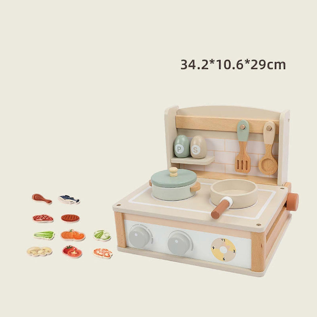 Description: Early Education Toy: This wooden kitchen toy set is an ideal educational toy for children. It stimulates their imagination, creativity, and hand eye coordination while they play and learn.Children's Mini Kitchen: Your child will enjoy making delicious food in this kitchen playset, starting their day full of energy.Learning and Development: Role playing with this set enhances creativity and imagination while improving hand eye coordination. Learning the shapes and characteristics of each pretend food toy helps develop cognitive abilities in children.Material: The wooden kitchen toy accessories are made from sturdy and wood, suitable for boys and girls aged 3 years old and above.Great Gift: With its cute appearance and realistic design , this pretend kitchen playset makes a great gift for birthdays or New Year celebrations. Size Chart: 33.5cmx27.5cmx25cm/13.19inchx10.83inchx9.84inch Package Includes: 1 Wooden Play Kitchen Toy Set for Kids Note: 1.This is not infant toy, please take away from children to avoid eating.2.Please allow slightly errors due to manual measurement and different monitors.
