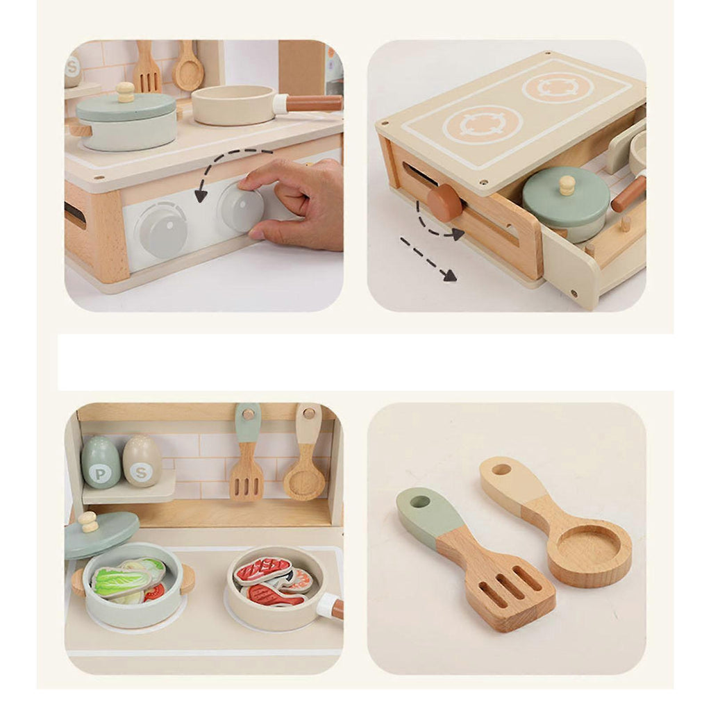 Wooden Toy Kitchen Set Play House Kitchenware Set for Age 3 4 5 6 7 Toddlers
