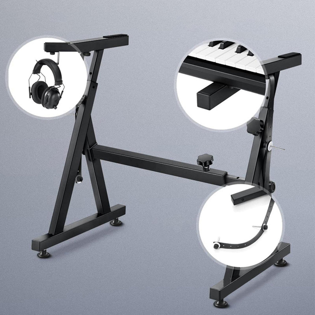 Description: Piano Stand:Z type heavy duty piano stand, fit 54, 61 and 88 key electronic keyboard stand, flexible and adjustable to fit all sizes of electronic pianos.Adjustable:The height and width of the Music stand can be adjusted arbitrarily according to your needs, which can meet the different needs of sitting or standing position, providing you with a comfortable playing experience.Material: Musical keyboard stand is made of iron material, sturdy, strong bearing force, good stability, with wheels, easy to move.Design: Electronic piano stand, unique Z shape design, makes the piano stand stable, reduces the noise caused by vibrations and improves the playing effect.Widely Used: Keyboard stand is suitable for beginners, amateur and professional performers or musicians. Specification: Material: Iron Size Chart: adjustable height: 60-85cm/23.62-33.46inchwidth:55-89cm/21.65-35.04inch Package Includes: 1 Piano Keyboard Stand