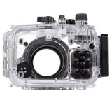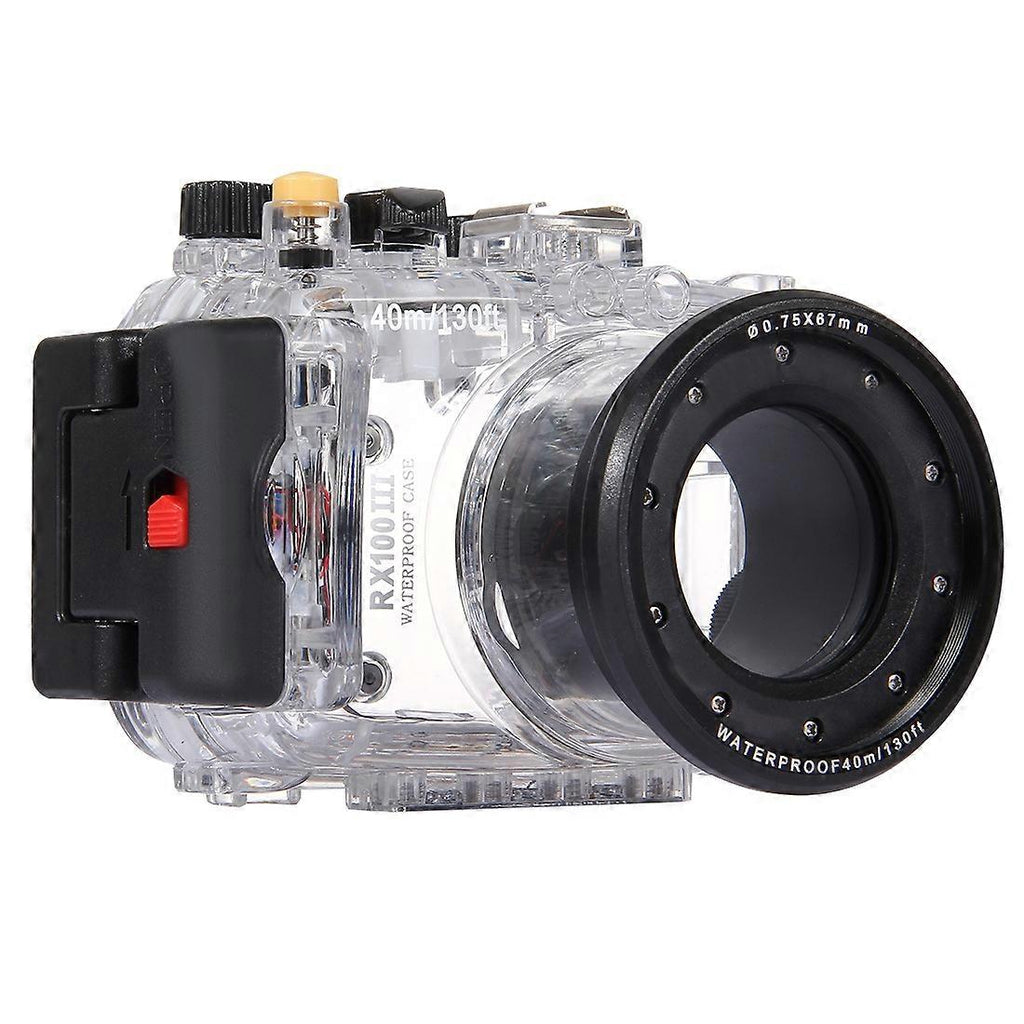 PULUZ 40m Underwater Depth Diving Case Waterproof Camera Housing for Sony RX100 III(Transparent) Features 1. Ideal for shooting water-activities photos, like shooting during surfing, snorkeling or diving. 2. It can also be used under rainy, snowy, windy, dust or muddy circumstance. 3. he protective housing case is suitable for Sony RX100 III outdoor sports camera, it can protect your sports camera and keep it away from dust. 4. It can protect your camera up to 130ft40 meters underwater, effectively keeps water apart from the device and gives them comprehensive protection. 5. Light weight, it is convenient and easy to use and carry, suitable for outside sports. Notice Please test underwater without your digital at the first time. Please confirm its leakproofness before use.