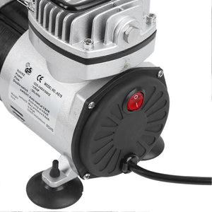 Feature:1. This piston type double cylinder airbrush pump is powerful with stable performance2. Airbrush compressor possess high working efficiency but low noise, no worrying about bothering others3. Equipped with practical oilwater separator, barometer, pressure regulator4. Provide automatic pressure relief start...
