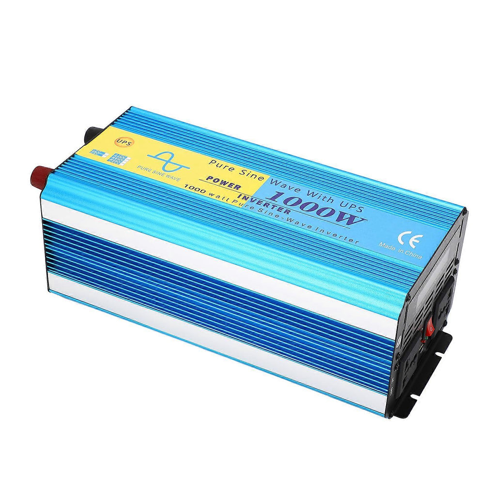 Feature:1. [1000W Power And USB Port] The pure sine wave inverter provides 3000W and dual AC outlets with continuous DC to AC power output, 5V 2.1A USB port, and the USB port can charge most phones and tablets.2. [Multi Protection] The off grid inverter uses isolated input and output technology with protection for overload, low voltage, high voltage, overheating and short circuit for improved safety.3. [Cooling Fan] Our off grid inverter has a cooling fan to prevent the device from overheating. With stepless variable speed and temperature control settings, the fan speed is determined according to the heat generated by the machine's operation and runs silently.4. [Aluminum Alloy Housing And Multi Vent Design] The pure sine wave inverter has a heat dissipating aluminum alloy housing and multi vent design with red copper material, which converts higher power.5. [Wide Application] The pure sine wave inverter can supply power to small devices such as laptops, tablets, printers or any other household appliances, either inductive load or resistive load appliances, widely used for home appliances, cars, industrial, office, travel, etc.Specification:Item Type: Pure Sine Wave InverterMaterial: Aluminum Alloy, Red CopperOutput Power: 1000WPeaking Power: 2000WDisplay: LCDOutput Waveform: Pure Sine WaveInput Voltage (DC): 12VUSB: DC5V 2.1AOutput Frequency: 50Hz Or 60HzOperating Temperature Range (Rated): 32F-104F/0C-40CLow Battery Alarm Range (Rated): 10-10.4VLow Battery Shutdown Range: 9.7-10VHigh Battery Shutdown Range: 15V.Package List:1 x Pure Sine Wave Inverter2 x Battery Cable1 x Power Cord1 x Instruction Manual