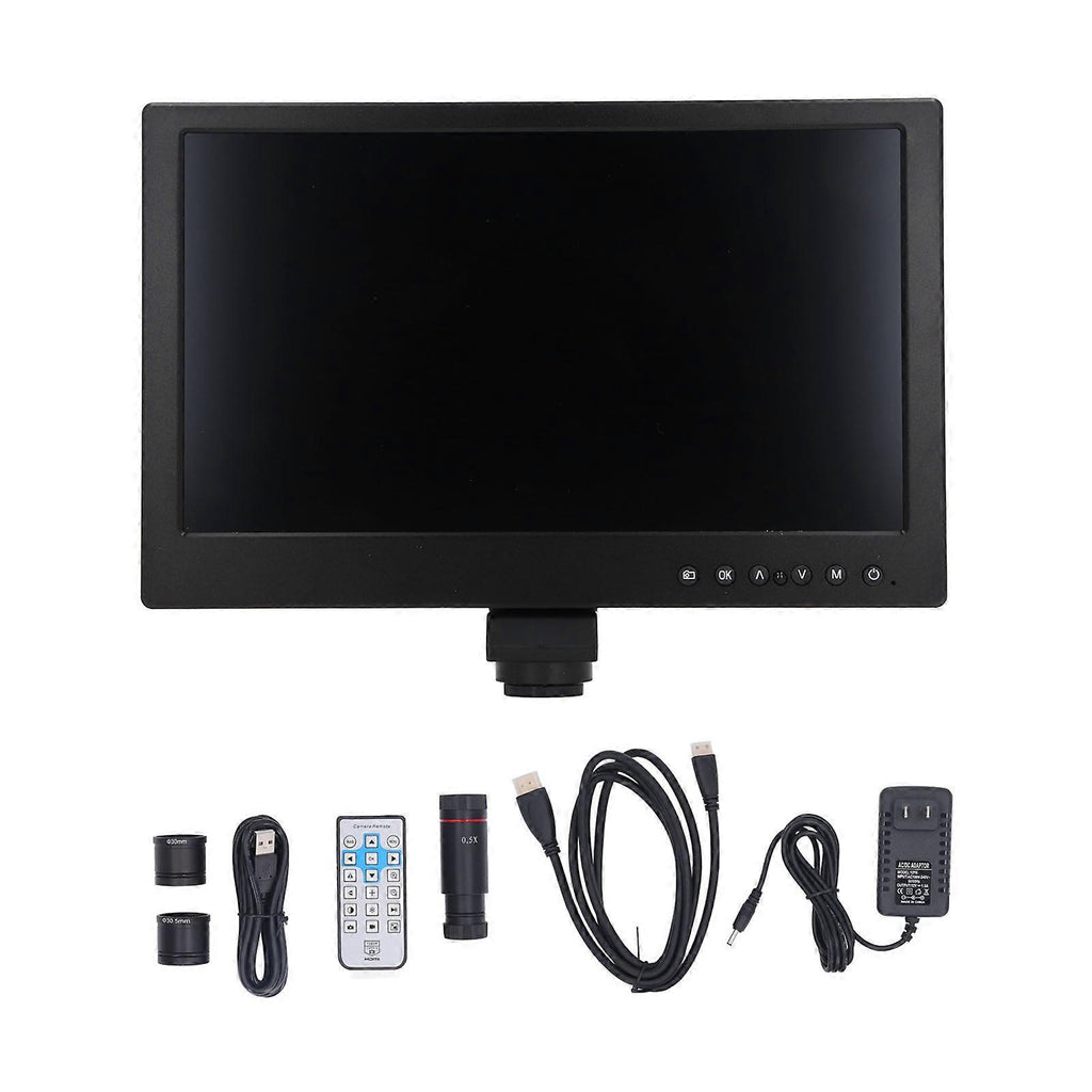 Feature:1. Video Microscope Camera: Microscope camera features 11.6in LCD screen with 16MP sensor, 1080P recording. 178viewing angle provides clear images. 90rotatable screen offers optimal viewing.2. Wide Compatibility: 0.5x adapter with 0.5X magnification, can be used with C Mount or CS Mount cameras. Suitable for biological or stereo microscopes. Installation size 23.2mm, 30mm, 30.5mm.3. Computer Software Support: Microscope camera is compatible with for Windows XP, for 7, for 8, for 10. USB output allows image storage on computer. Adjust white balance, exposure, color, support photo video, accurate measurement, HDD data storage, gridlines.(Please make sure there is no memory card in the camera, memory card storage is only used for HD multimedia interface output).4. Advanced Editing Functions: Add layers, watermarks, mosaics; adjust color balance, exposure, saturation, contrast, resolution, histograms, granulation. Measure lines, shapes, annotate with custom text sizes and colors, accurate measurement in microns, millimeters, inches.5. Transform Traditional Microscopes: Connect to traditional microscopes to turn them into electronic microscopes. Easy to install, universal, lightweight design.6. Application Scenarios: Our microscopes are suitable for microelectronics, molds, accuracy machinery, jewelry, watches, maintenance school demonstrations, etc. It is suitable for looking at the microstructure of the outside of large objects.Specification:Item Type: Microscope CameraMaterial: ABS, Aluminum Alloy Voltage: 100-240V Remote Control Battery: 1 x CR2025 150mAh button battery (shipped with built in battery)Memory Card: 128G Maximum (shipped without memory card)Video Resolution: 1080PCMOS Size: 1/2.8 inchesRecording Resolution: 1080P, 720PVideo Format: MP4Image Format: JPEGSpectrum Response (Wavelength): 400nm to 1000nmTimed Photo/Video: Support timed photo, video recordingDual Output: Support HD, USB output simultaneouslyWhite Balance: Support 1 key, automatic, and manual white balanceCross Line: Set 8 lines, color, width, positionExposure: Automatic, ManualLight Source: 2 adjustable LED lights(Brightness Adjustable)Photo Resolution: 16MP, 12MP, 8MP, 5MP, 3MPPC OS: For Windows XP, for Windows 7, for Windows 8, for Windows 10 or higherLanguage Support: English, French, Spanish, Portuguese, German, Italian, Simplified Chinese, Traditional Chinese, Russian, Japanese, Korean0.5X Adapter Specifications: This is a 0.5x zoom lens that expands the camera's field of view. It can be used with a C Mount or CS Mount camera of any pixel and placed in a binocular or triocular microscope to enlarge the field of view. Mounted directly in biological or stereoscopic eyepiece cameras.Magnification: 0.5XInstallation Size: Approx. 23.2mm / 0.91in, 30mm / 1.18in, 30.5mm / 1.2inCompatible Microscopes: Biological and Stereo Microscopes.Package List:1 x IPS HD Video Microscope Camera1 x Remote Control1 x HD Cable1 x USB Cable1 x Power Adapter1 x 0.5X Barlow Lens2 x Lens Adapter Rings