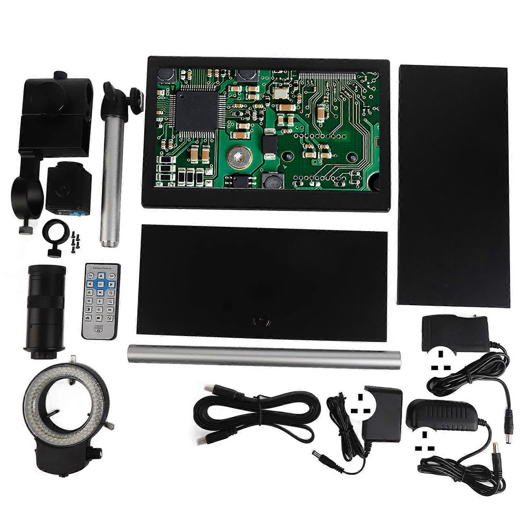 Feature:1. LCD Display: This microscope is equipped with 11.6 inch LCD display, and built in 16MP HD camera image sensor, 2K or 1080P video recording camera, LCD screen provides clear images.2. Support System: The microscope's computer software system software supports for Windows XP 7 8 10 system. When connecting the electron microscope to a computer, you can adjust the software to operate white balance, exposure and color adjustment, support photo and video recording, measurement, computer hard disk to store data, grid lines, and easy operation.3. Flexible Rotation: Our microscope has sturdy metal stand. With lifting shaft design, free to adjust the observation distance, metal swing arm can be 180 adjustment, with infinitely adjusting brightness LED ring light, the light consists of 144 small LED bulbs, the light is very uniform and soft, providing multi directional lighting.4. 8X150X Zoom lens: Microscope has magnification 0.11X2X (about 8X150X on the monitor), clear display, the bracket in the lens set can firmly fix the lens, making your observation process more stable and safer to use.5. Applicable Scenes: Our microscope is suitable for microelectronics, molds, machinery, jewelry, clocks and watches, maintenance school demonstrations, etc. And is suitable for observing the external microstructure of large objects.Specification:Item Type: Microscope CameraMaterial: Aluminum AlloyRemote Control Battery: 1 x CR2025 150mAh Cell Battery (Shipping With Built In Battery)Camera SpecificationsModule: HY 5199DSensor: 16MP CMOSOptical Format: 1/2.9 InchPixel Size: 2.85mx2.85mInterface: High Definition Multimedia Interface (Class A)High Definition Multimedia Interface Image Resolution: 16MPVideo Resolution: 2K, 30FPS, 1080p, 60FPSHigh Definition Multimedia Interface Resolution: 1920 x 1080p 60FPSHigh Definition Multimedia Interface Ratio: 4:3, 16:9 Screen SupportCompact Memory Card: Up To 128GB (Shipping Without Storage Memory Card)AWB:AWB Color Correction, Auto, ManualR.G.B Value Setting IndependentExposure: Auto or Manual. AE Value Can Be SetCrossed Lines: 8 Lines, Color, Width And Position Can Be SetScale Line: 2 LinesDashed Lines: 2 Lines, Color, Width And Position Can Be SetClarity Contrast Color Gain: SupportMonochromatic Negative Firm: SupportMirror: Horizontal And Vertical MirrorLanguage: English or Simplified Chinese or French or Spanish or Japanese or GermanDigital Zoom: SupportInfrared Remote Control: SupportVoltage Input: DC 12VPower Supply Voltage: Input: AC100-240VOutput: DC12VPower Consumption: Maximum 0.15W 12V, 0.12ALens Interface: C or CS Port150x LensAmplification Power 0.12-2X (About 8X-150X On The Display)Field Of View: 2.4mm-66mmZoom Ratio: 2:1Size: Approx. 105mm x 40mm / 4.13 x 1.57in144 LED Microscope Ring LightProvides Intense And Focused Shadow Free Illumination144 Illuminated LED BulbsIllumination Variable ControlIntense And Focused Shadow Free Illumination100000 Hours Of LifePower Input: 100-240V, 50-60HZ, Automatic SwitchingWorking Distance: 27mm-120mm11.6 Inch LCD Display11.6 Inch LCD Monitor, High Definition Multimedia Interface Input Bnc Vga Av16:9 Ratio Tft LedNative Resolution: 1920x1080PClosed Circuit TV Camera BNCMicroscope StandRing Diameter: Approx. 40mm / 1.57inMaterial: Aluminum Alloy, Easy To CarryColor: BlackMaximum Diameter Of Microscope Barrel: Approx. 42mm / 1.65inSupport Height: Approx. 310mm / 12.2in.Package List:1 x Microscope Camera1 x 150X Type C Mount Lens1 x 144 LED Light3 x Power Adapter1 x High Definition Multimedia Interface Cable1 x Driver1 x Remote Control6 x Microscope Stand Accessories5 x Screws1 x 11.6 Inch Screen2 x Manual