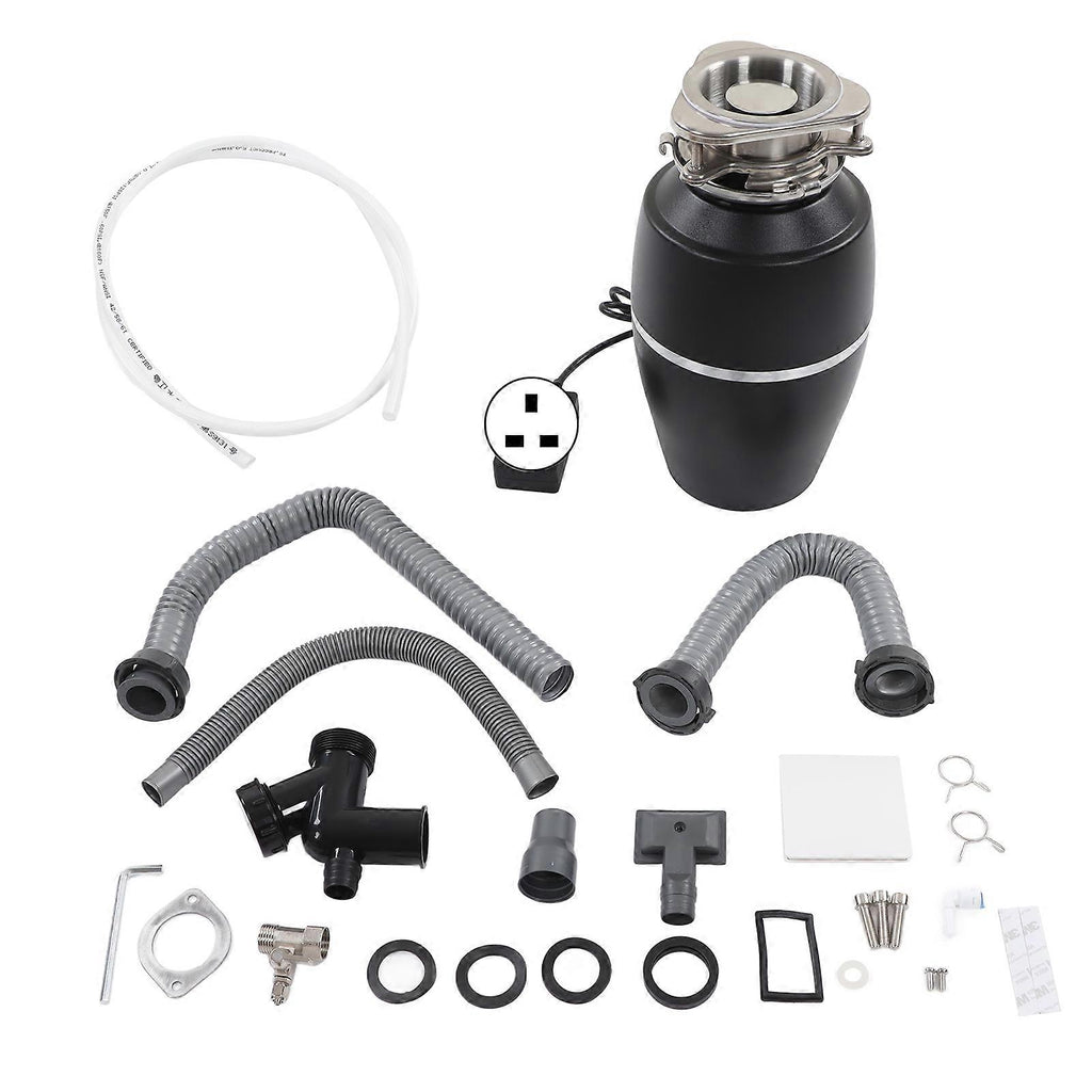 Feature:1. One Button Wireless Control: The garbage disposer has a grinding capacity of 1300ML, one piece control, no punching, finer crushing, water flush that is clean, will not block the drain.2. No Blade Safety Design: The grinding disc is driven by DC motor with 3800 RPM, which crushes the food waste in 360 collision to a paste.3. Triple Soundproofing: The garbage disposal has a silent cotton and full wrap closure, with a silent and shock absorbing effect, triple soundproofing, just 45 to 60DB.4. Abrasion Resistant Rubber Splashing Guard: The garbage disposal has a splashing guard to prevent garbage from splashing out, children's hands from getting deeper, and other objects from falling in.5. Overload Protection: Effectively avoid overload of the disposer, the knife plate is stuck by hard objects in the main, etc., just press to reset.6. Thoughtful Sink Plug: Auxiliary to push the garbage, no need to hand deep, dustproof and waterproof to prevent foreign objects from falling in, reserved for dishwasher interface.Specification:Item Type: Food Waste DisposerMaterial: ABS and stainless steelProduct Color: BlackProduct Capacity: 1300mLProcessing Process: Three bins and nine levels, two levels of filtrationGrinding Fine: 1.5mmSound and Noise Speed: 45 to 60 db, 3800 rpmHorsepower: 1HP, 560W.Package List:1 x Kitchen Waste Disposer1 x Hex Wrench5 x Fixing Screw1 x Conduit1 x Wireless Remote Control Socket1 x Remote Controller1 x Socket Sticker 3 x Flanged Pipe7 x Flanged Pipe Accessories1 x 4 Way Connector5 x AccessoriesNote:For your safety and to avoid blockage, please observe the following:1. Do not put your hands into the machine during operation, and clean it only after unplugging the power plug.2. Food garbage that cannot be treated: pig bone, cow bone and other large and hard bone, long fiber wastes such as soybean hull, corn bract, seed, etc; intestines, fur, fish scales and other high toughness garbage; shells such as oysters and snails are easy to deposit garbage that blocks the pipes.3. Items that are easy to be put into the machine by mistake but cannot be handled: metal, wood, plastic, ceramics, glass, rags, plastic bags, ropes and other foreign matters.4. The machine must drain water in the process of garbage treatment. After treatment, the machine will be shut down after flushing for 10 seconds.