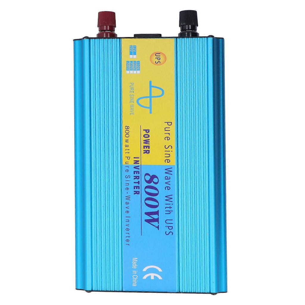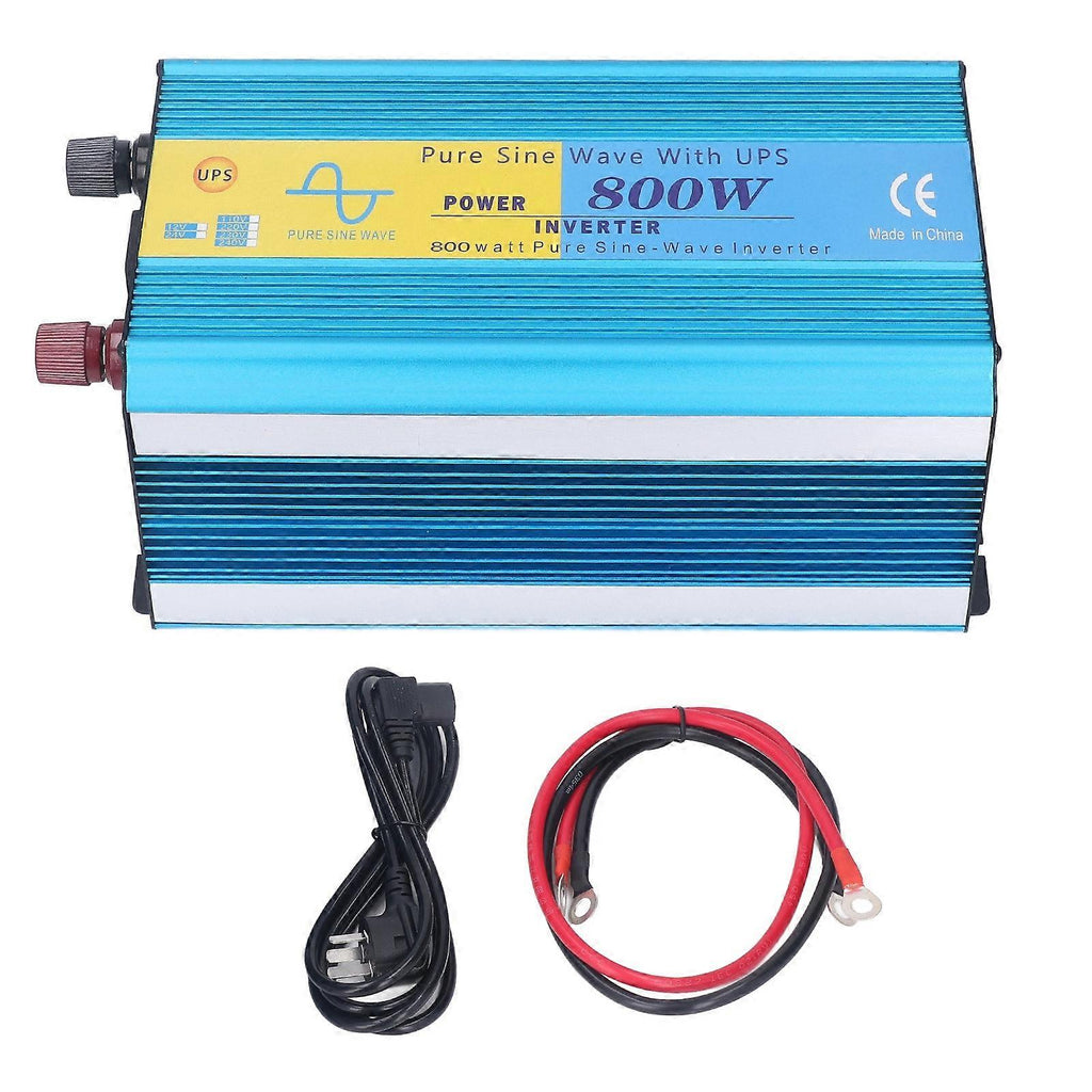 Feature:1. COPPER INVERTER: Copper based inverter has higher power, are more reliable, stable, and powerful than conventional inverter.2. EXCELLENT HEAT DISSIPATION: To dissipate heat and prevent equipment overheating, the inverter incorporates a cooling fan and a multi vent design made of aluminum alloy.3. QUIET WORK: The inverter uses stepless speed change and temperature control settings for low noise operation. The heat produced by the machine controls the fan speed. Work that is both quiet and relaxing.4. SAFE USE: The inverter adopts advanced isolation input and output technology, which improves safety and provides overload, low voltage, high voltage, overheating, and short circuit protection functions.5. WIDE APPLICATION: The inverter can be used for supply power to small devices such as laptops, tablets, printers, DVDs or any other household appliances. Both inductive load and resistive load electrical appliances can be used, widely used in household appliances, vehicles, field operations, industrial, office, tourism, etc.Specification:Item Type: 800W Pure Sine Wave InverterMaterial: Aluminum Alloy, CopperOutput Power: 800WPeak Power: 1600WDisplay: LCDOutput Waveform: Pure sine waveInput Voltage (DC): 12VUSB: DC5V 2.1AOutput Frequency: 50Hz or 60HzWorking Temperature Range (rated): 32 to 104 , 0 to 40 Low Battery Alarm Range (rated): 10-10.4VLow Power Off Range: 9.7V-10VHigh Power Off Range: 15V.Package List:1 x Inverter 2 x Battery Cable 1 x Power Cable 1 x Manual Note:1. Do not connect the AC socket of the on site AC power inverter. Even if it is turned off, the inverter will be damaged.2. Do not connect any AC load, and its neutral conductor is grounded.3. Do not expose the temperature of the inverter to more than 104 (40 ).