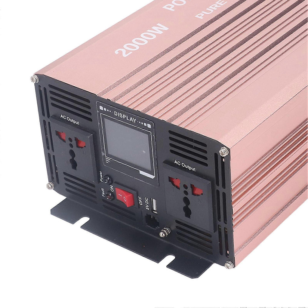 Feature:1. Powerful And Versatile: The 2000W power inverter with USB port is perfect for camping and travel. It can power your electronic devices and appliances, such as laptops, smart phones, tablets, and more, making your outdoor activities more convenient and enjoyable.2. Efficient: With up to 94% efficiency, this car power inverter ensures minimal energy loss, allowing you to make the most of your battery power. The intelligent cooling fan keeps it running smoothly, even in demanding conditions, providing reliable performance when you need it most.3. Safe And Reliable: Equipped with multiple protection features, including low voltage and over voltage of the battery, overload, overheat, and short circuit protection, this DC to AC converter keeps your devices and appliances safe from any potential damage.4. Pure Sine Wave Output: The pure sine wave output of this car power inverter ensures a stable and clean power supply, making it compatible with sensitive electronic devices.5. Easy To Use: You can simply plug the pure sine wave inverter into your car's 12V or 24V socket and connect your devices. The 2 outlet design allows you to power multiple devices simultaneously. The USB port provides convenient charging for your smartphones and other USB powered devices.Specification:Item Type: Car Power InverterMaterial: Aluminum AlloyOutput Voltage: 220VACUSB Port: 5VDCInverter Power: 2000WOutput Waveform: Pure Sine WaveSoft Start: YesAC Regulation: THD 3% (Linear Load)Efficiency: Up to 94%Cooling Method: Intelligent Cooling FanProtection: Low Voltage and Over Voltage of Battery, Overload, Overheat, Short CircuitOperating Temperature: -10C-50C.Package List:1 x Car Power Inverter2 x Input Cables2 x Knobs7 x Accessories1 x Manual