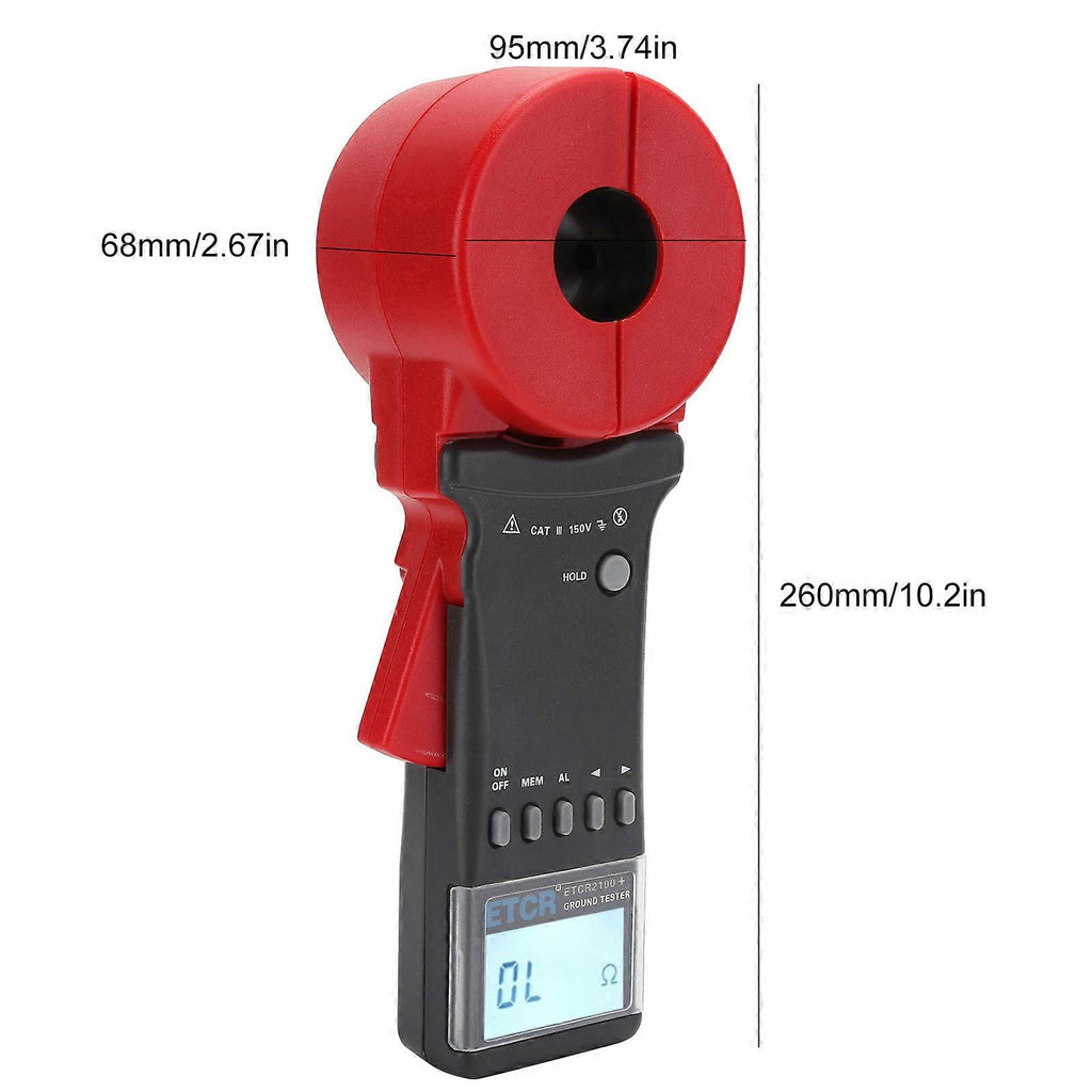 Feature:1. The resistance threshold value of sound and light alarm and stored data is 99 units, lower power consumption and easier operation.2. When measuring a grounding system with loops, there is no need to disconnect the ground down conductor, and no auxiliary electrode is needed, which is fast and reliable.3. It is widely used in ground resistance measurement and loop resistance measurement of electric power, telecommunications, meteorology, oil field, construction and industrial electrical equipment.4. It adopts LCD screen and highdefinition digital display, which is convenient to read the measurement results and easy to use.5. Made of highquality ABS+iron material, it is wearresistant and durable, not easy to damage, and has a long service life.Specification:Condition: Brand NewItem Type: Clamp MeterMaterial: ABS + IronFunctionGround Resistance Test, Loop Resistance TestPower Supply4 x 1.5V AA Dry Battery (Battery Not Included)Resistance Range0.01-1200Resistance Resolution0.001Data Storage99 GroupsAlarm Threshold Setting RangeResistance: 1-199Sound and Light AlarmBeep-beep-beep alarm sound, the alarm sign flashes, press the AL button to turn on, off, and setInterference Signal Recognition FunctionBeep-beep-beep prompt sound, NOISE sign flashing displayWorking Temperature and Humidity-20-55;20%RH-90%RHLCD Display4-Digit LCD Digital Display, Size: Approx. 47 x 28.5mm/1.9 x 1.1inClamp Mouth DiameterApprox. 32mm/1.3inClamp Meter SizeApprox. 260 x 95 x 68mm/10.2 x 3.7 x 2.7inProtection LevelDouble InsulationStructural FeaturesClamp-on CTGear ShiftFull Automatic Gear ShiftExternal Magnetic Field<40A/mExternal Electric Field<1V/mSingle Measurement Time0.5SResistance Measurement Frequency>1KHzMeasured Current Frequency50/60Hz AutomaticBattery Voltage Low Indication FunctionWhen the battery voltage is lower than 5.3V, the battery voltage low sign is displayedStored Data Full IndicationStored data is full of 99 groups, flashing MEM signOver-Range IndicationOver-range indication OL, L0.01 or OL AAutomatic ShutdownThe meter will automatically shutdown after about 5 and a half minutesPower ConsumptionStart-up, working current is less than 50mA, working continuously for about 30 hours.Package List:1 x Clamp Meter (Battery Not Included)1 x Measuring Ring1 x Aluminium Box1 x Instruction