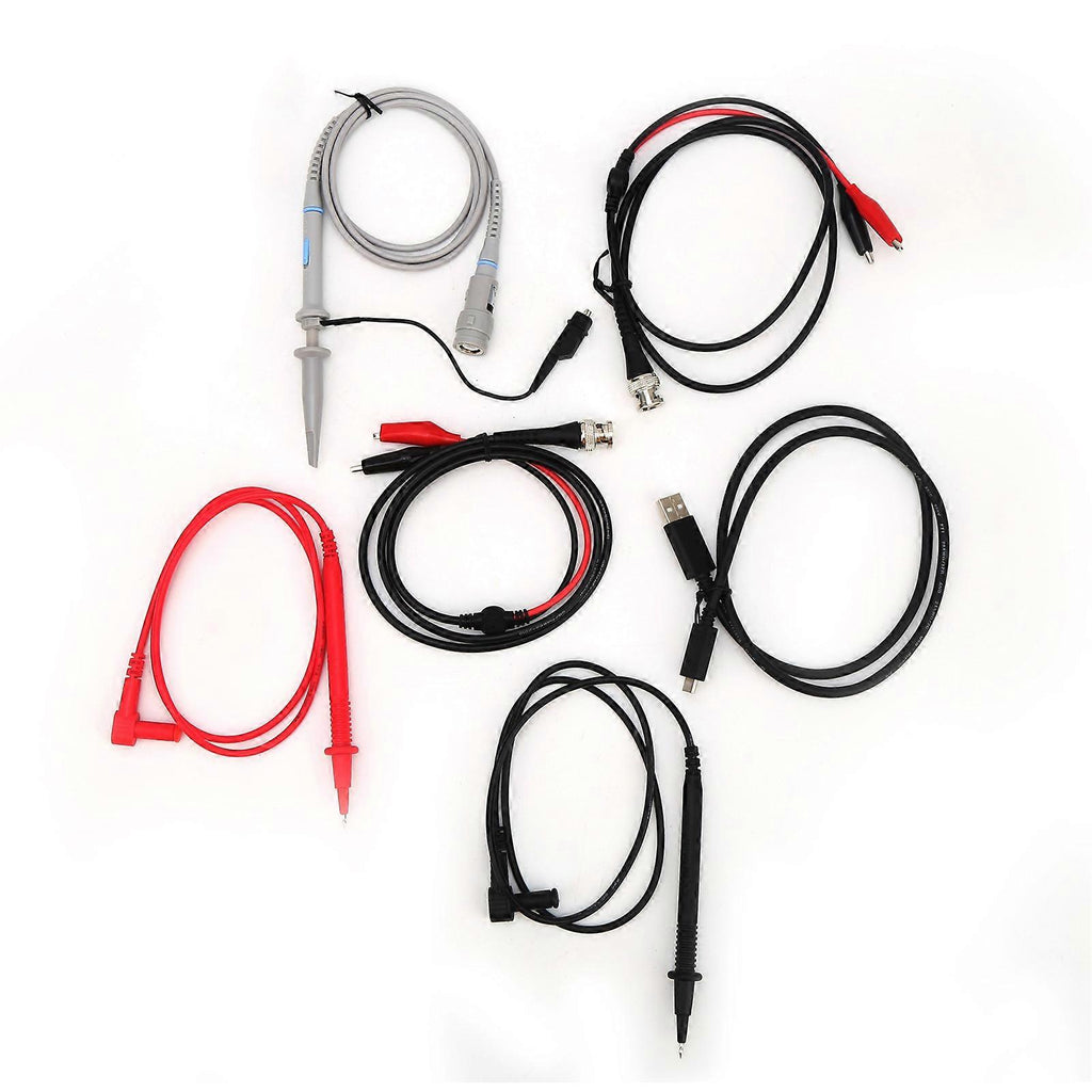 Feature:1. [Oscilloscope Mode] Waveform refresh rate up to 10000wfms/s. 2 way inputs, bandwidth of up to 200MHZ, providing better signal reception. Real time sampling rate is 1GSa/s, the record length can achieve 8k points.2. [Multimeter Mode] 4 1/2 bits of true RMS. Supports voltage, current, resistance, capacitance, diode, on off test. Maximum input voltage is 750V AC and 1000V DC.3. [Multi Function] Equipped with automatic range function, convenient for testing and debugging, with reading and waiting function, relative measurement function, more practical.4. [High Performance] The signal source adopts a 25MHz output frequency, 1GS/s sampling rate, 14 bit vertical resolution, supports 1M and 50 outputs.5. [USB Type C Interface] Not only supports mobile power supply, but also supports adapter charging and top grade computer connection. Computers can read saved images or CSV waveforms, which is very useful for viewing and analyzing waveforms or sharing waveform data in the future.Specification:Item Type: Oscilloscope MultimeterMaterial: ABSOscilloscope:Model: HDS2202SBandwidth: 200MHzChannel: Dual channel, single channel signal sourceReal Time Sampling Rate: 1GSa/s (single channel), 1GMSa/s (dual channel)Sampling Mode: Normal, peak samplingStorage Depth: 8KDisplay: 3.5 inch LCDWaveform Refresh Rate: 10000 wfrms/sInput Coupling: DC, AC, groundingInput Impedance: 1M2%, parallel to 16pF10pFProbe Attenuation Coefficient: 1X, 10X, 100X, 1000XMaximum Input Voltage: 400V (DC+AC peak, 1M input impedance) (10:1 probe attenuation)Bandwidth Limit: 20MHzTime Base Range: 5ns/div~500s/div, in steps of 1-2-5Vertical Sensitivity: 10mV/div~10V/divVertical Resolution: 8bitLow Frequency Response(-3db): 10Hz at BNCRise Time (Typical on BNC): 5nsTrigger Type: Edge triggerTrigger Method: Automatic, normal, single timeTrigger Level: 4 divisions from the center of the display screenAutomatic Measurement: Frequency, period, amplitude, maximum, minimum, average, peak to peakCursor Measurement: Voltage difference between cursors ( V), time difference between cursors ( T)Communication Interface: USB TYPE CPower Supply: Polymer 18650 x 2 4400mAh (built in)Multimeter Partial Performance Parameters:Digital Display: 4 (maximum display 20000)Measurement: Voltage, current, resistance, capacitance, diode, on offInput Impedance: 10MDiode: 0-2VRange and Accuracy:DC Voltage:200.00mV, (0.5%+5 dig)2.0000V 20.000V 200.00V, (0.3%+3 dig)1000.0V, (0.5%+2 dig)AC Voltage:200.00mV 2.0000V 20.000V 200.00V, (0.8%+5 dig)750.00V, (1%+5 dig)DC Current:20.000mA 200.00mA, (1%+5 dig)10.000A, (2.5%+2 dig)AC Current:20.000mA 200.00mA, (1%+5 dig)10.000A, (2.8%+5 dig)Resistance ():200.00 2.0000k 20.000k 200.00k 2.0000M, (0.8%+3 dig)20.000M, (1%+3 dig)100.00M, (3%+3 dig)Capacitance (F):20.000nF 200.00nF 2.0000F 20.000F 200.00F 2.0000mF, (3.0%+10 dig)Frequency Response (Hz): (40-1000) HzSignal Source Partial Performance Parameters:Waveform Output Frequency:Sine Wave: 0.1Hz~25MHzSquare Wave: 0.1Hz~5MHzSawtooth Wave: 0.1Hz~1MHzAny Wave: 0.1Hz~5MHzSampling Rate: 125MS/sNumber of Channel: 1Output Amplitude: 20mVpp-5Vpp (high resistance), 10mVpp-2.5Vpp (50)Waveform Length: 8KVertical Resolution: 14bitsOutput Impedance: 50.Package List:1 x Oscilloscope Multimeter2 x BNC to Crocodile clip1 x USB TYPE C Cable2 x Test Pen1 x Probe Pen1 x Bag1 x Calibration Pen4 x Plastic Ring1 x Plastic Cover1 x Hollow Iron Needle1 x Instruction Manual
