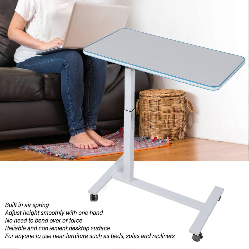 Overbed Table Rolling Bedside Standing Desk Liftable Movable Pneumatic Hospital Bed Table Blue
