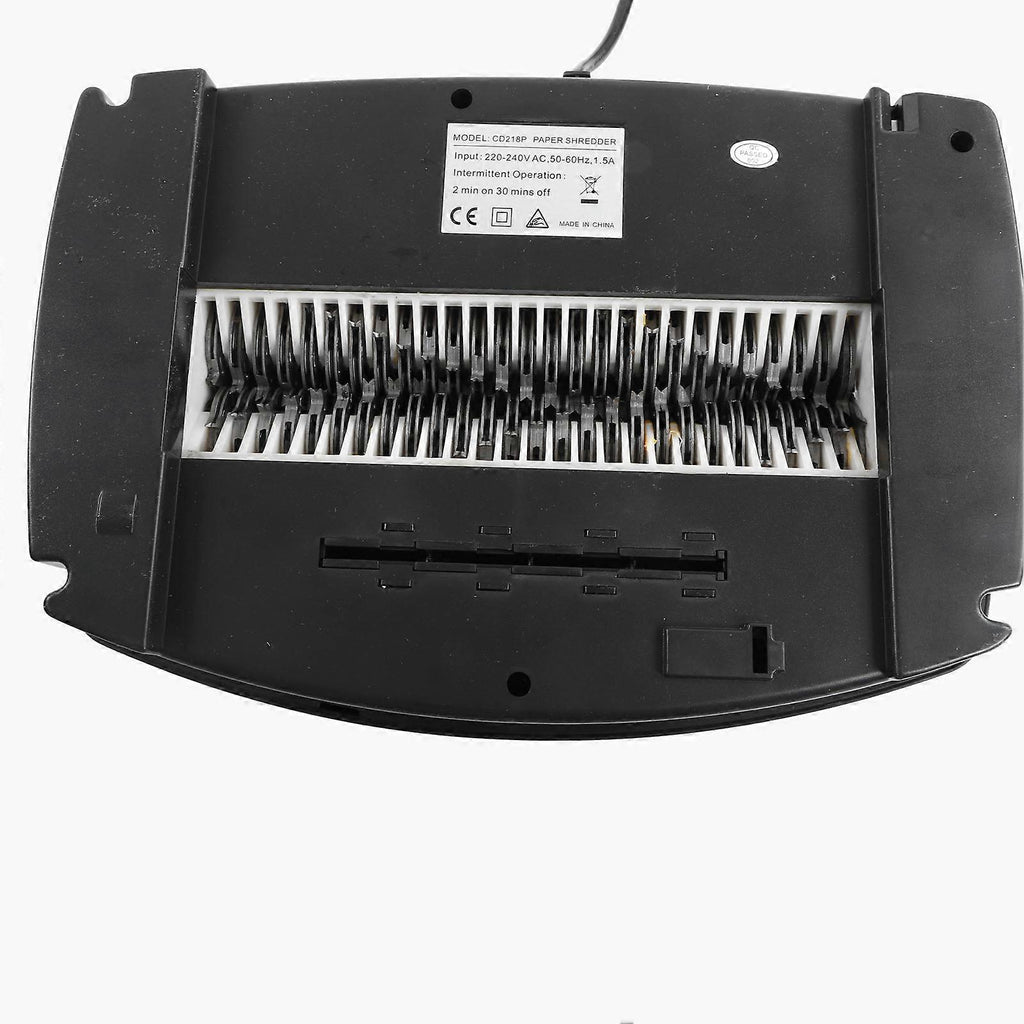 Feature:1. Cut Type: Shredder can cross cut up to 10 sheets of A4 paper at a time and can also shred CDs, credit cards, business cards and unopened junk mail.2. Security Level: Ideal for handling highly confidential documents, the heavy duty shredder shreds paper into cross cut particles for enhanced security3. Stable Operation: High efficiency paper shredder overload operation will automatically activate overheat protection with a 30 minute cooling time.4. High Efficiency: The upgraded design of the shredder works with low noise with 15 minutes of continuous shredding, and also automatically reverses jammed paper.5. Large capacity Bin: Heavy duty shredder 21L garbage can and holds up to 1000 sheets of paper for less frequent and easy emptying.Specification:Item Type: Paper ShredderMaterial: ABSModel: CD218PShredding Effect: Approx: 4x35mm/0.15x1.37inShredding Capacity: 10 A4 sheets /1 DVD/1 CD/1 credit cardRated Voltage: EU Plug 220-240VSecurity Level: P-4 security levelFeed Port Size: Approx: 220mm/8.66inPaper Capacity: 21LCutting Type: DVD/CD/ Credit card: bar cutting; Paper: Cross cut.Package List:1 xShredder1 x Trash Can1 x User ManualNote:1. Please allow slight error due to manual measurement. Thanks for your understanding.2. Monitors are not calibrated same, item color displayed in photos may be showing slightly different from the real object. Please take the real one as standard.