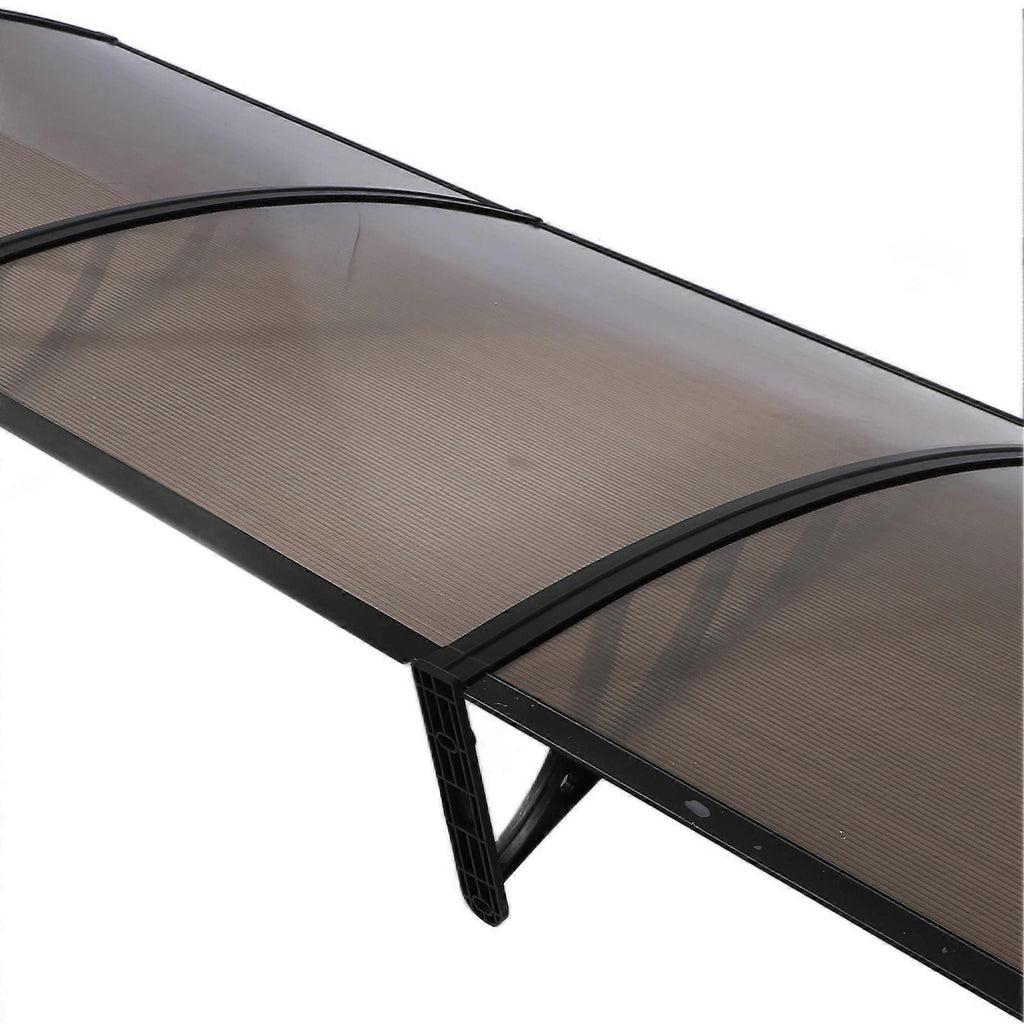 Feature:1. Great in Shading: This large awning can provide your door or window a safe space free from rain or sunshine, offering reliable protection.2. Sturdy Structure: Consisting of plastic steel frame and PC panel, the window canopy is very sturdy against heavy rain and strong wind.3. For Outdoor Uses: The door awning cover allows for wide application in garden, patio, entrance and so on, very suitable for outdoor use.4. Beautiful Design: Simple but elegant design along with pretty color makes the door canopy an excellent decoration for your lovely home.5. Quick to Install: Comes with complete accessories, the while installation is very convenient to install within several minutes.Specification:Item Type: Window AwningMaterial: Plastic Steel, PCBoard Color: Brown.Package List:3 x Panel4 x Bracket6 x Muntin1 Bag x Parts 1 x User Manual