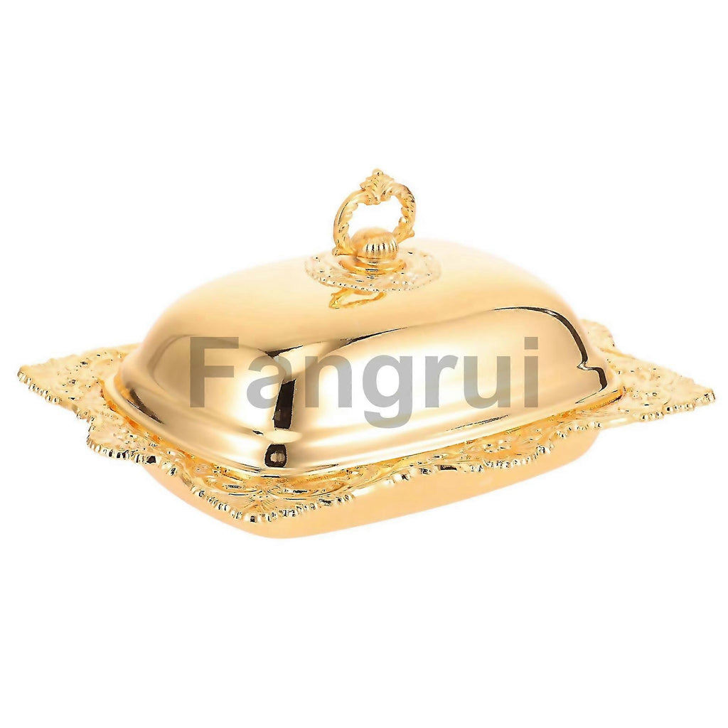 Butter Dish Storage Holder Delicate Design For Home Use Golden 20x15cm Food Preservation 1set