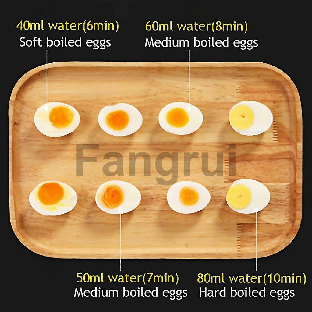 Fangrui Product Details Versatile Quick Egg Boiler: Follow The Instructions And Your Eggs Will Be Cooked To Perfection. Soft Eggs, Medium Eggs, Hard Eggs, Poached Eggs, Steamed Eggs, Vegetables And Dumplings Can Be Made In Minutes. Tip: The Measuring Cup Will Tell You How Much Water To Add To Any Type Of Egg You Want To Make. Enjoy A Delicious And Nutritious Breakfast! Seven Egg Capacity And Durable Material: The High-quality Stainless Steel Egg Holder Tray Is Made Of Food-grade Material. The Egg Boiler Is Rust-proof, Durable And Easy To Clean. The Seven-egg Capacity Meets The Needs Of Home And Office Workers. Convenient And Safe Function: Cooking Is Simple And Convenient. Press The On/off Button To Start, And The Automatic Shut-off Function Prevents Overcooking And Ensures Safe Use. This Egg Machine Will Help Improve The Quality Of Your Life. Thoughtful And Space-saving Design: The Upgraded Design Prevents You From Getting Your Fingers Hurt When Cleaning The Tray. The Portable Steamer Is Lightweight And E