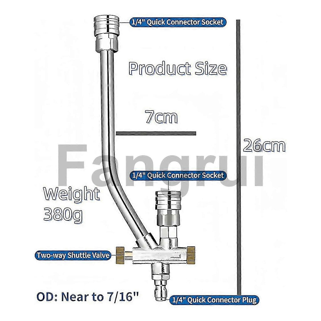Fangrui Product Details The Innovative Foam-cannon Stands Out For Its Ability To Connect And Utilize Two Accessories Simultaneously. This Unique Allows Users To Switch Seamlessly Between Soaping And Rinsing With Just A Flick Of A Switch, Streamlining The Cleaning Process. The Foam-cannon Incorporates A Smart Design That Enables A Smooth Ition Between Soap Application And Rinsing. This Enhances The User Experience By Making Cleaning Tasks More Efficient And Convenient. The Foam-cannon Simplifies Car Detailing By Allowing Users To Foam And Rinse With One Hand While Using A Wash Mitt With The Other. This Not Only Saves Time But Also Elevates The Overall Effectiveness Of The Cleaning Process. The Foam-cannon Boasts A Two-way Shuttle Valve Specifically Engineered For Easy Switching Between The Foam Spray Gun And Tip. This Innovative Ensures That Users Can Quickly Adapt To Different Cleaning Tasks Without Hassle. The Foam-cannon Comes With A Unique Design Featuring Two Different Connector Ends-a Longer One For The