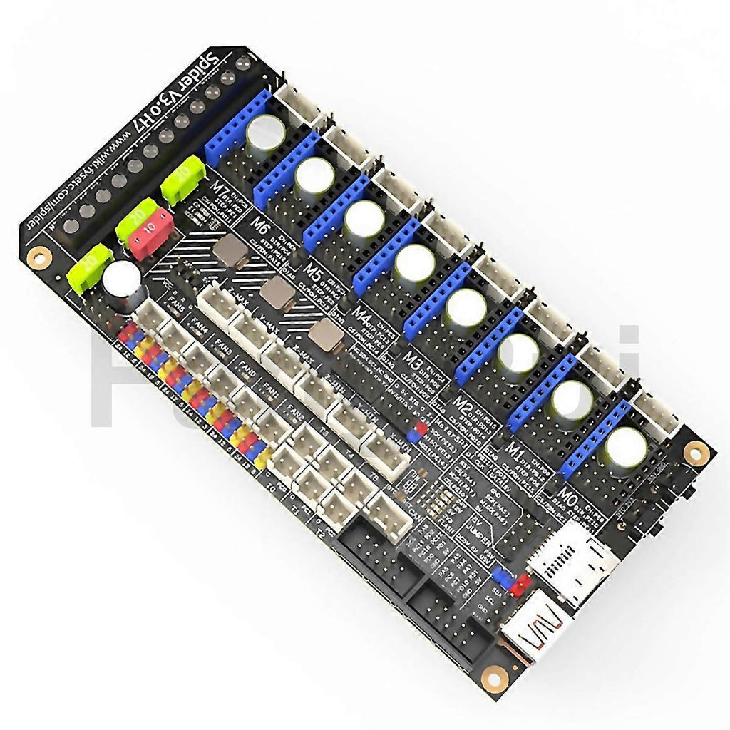 Fangrui Product Details Spider V3.0 H7 Version is a product that replaces the MCU based on the for-original F446 version Spider V3.0. And all drivers are changed to support 24V/48V optional power supply to further meet high voltage/high speed requirements. Update Vs F446 Version: STM32H723VGT6, 550Mhz Moter Power input, 60V (Remove one MOSFET output) Voltage selector on every Driver 120uF/63V Capacitor For Motor Driver DotStar RGB Support USB-A 5V Power Supply Colour:As Shown Material:ABS Package Contents: 1 * Mother Board Drive Set Only the above package content, other products are not included. Note: Light reflection and different displays may cause the color of the item in the picture a little different from the real thing. The measurement allowed error is +/- 1-3cm.