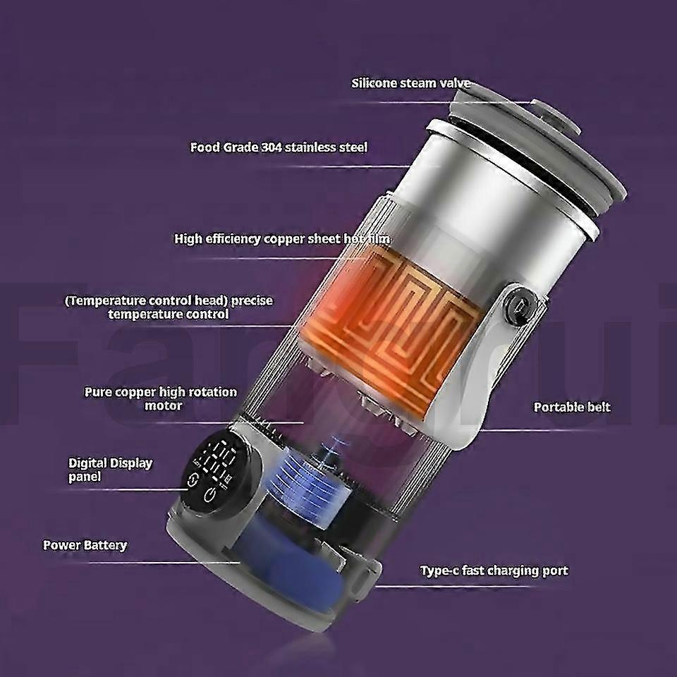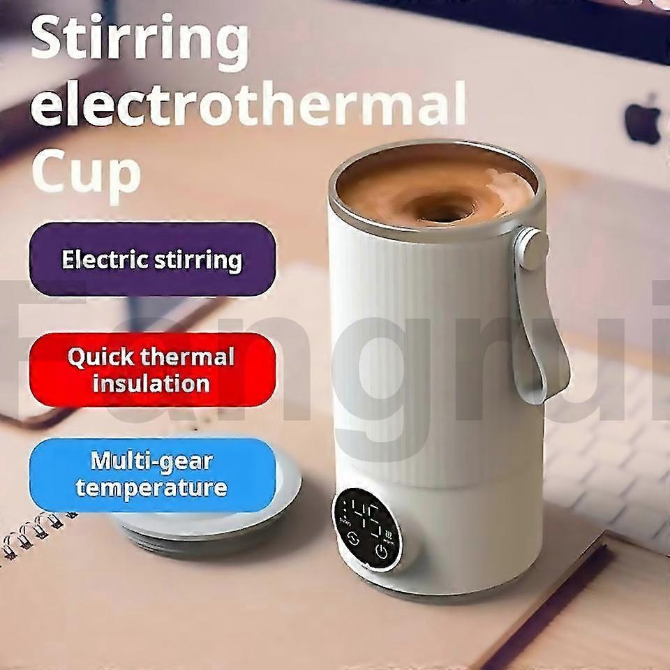 Fangrui Product Details Wireless Milk Warmer Heating Mixing Cup for Coffee Cereal Medicine Preparation 1. Rechargeable heating mixing cup, can be used for heating and stirring coffee, milk powder, tea, beverages, granules, etc. 2. Six levels of temperature adjustable from 37-55 degrees Celsius (374042455055 degrees Celsius adjustable) 3. Dynamic stirring capacity can reach 300ML, and stewing capacity can reach 350ML. 4. Charging time is about 2 hours, heating time is 100 minutes, and keeping time is about 4 hours. Heating cannot be done while charging. 5. High-speed motor, quick and even mixing, upgraded torque, durable 6. 6000mAh 18W fast charge, digital touch screen intuitively displays temperature and power 7. Seamless integrated cup body, can be rinsed directly 8. Multiple power supply methods (charging headcar chargerpower bank, etc.) to meet the needs of various scenarios Specification: 1. Charging time: about 2 hours 2. Continuous heat preservation: about 4-6 hours, continuous heating for 100 minutes 3. Batt