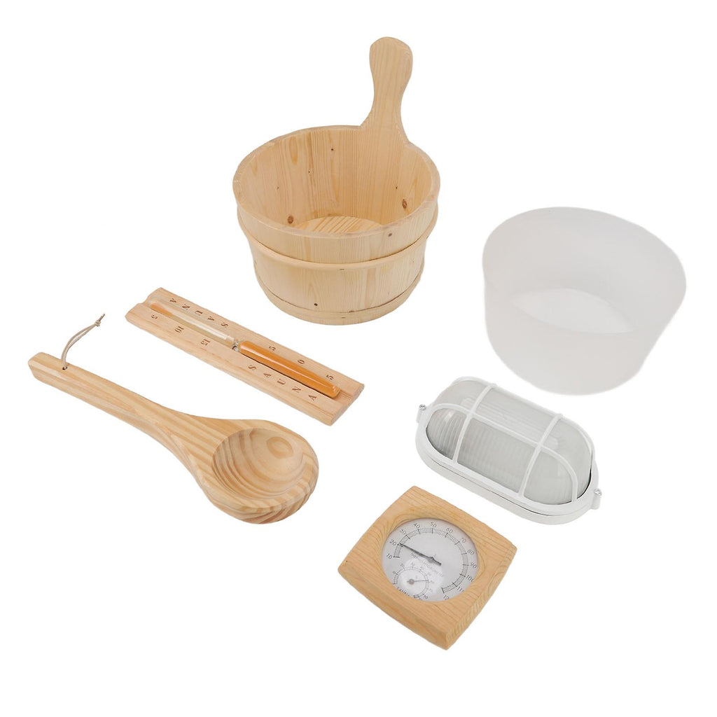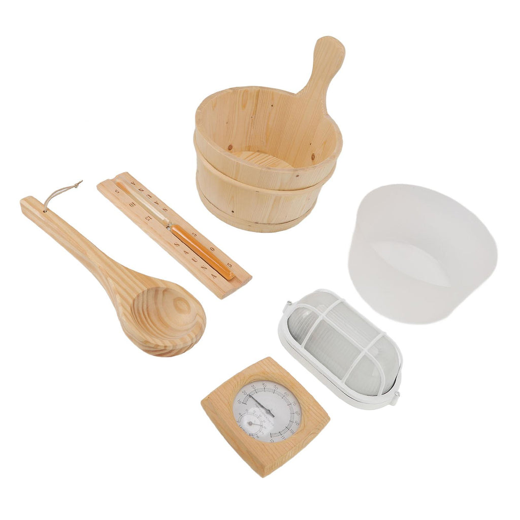 4L Sauna Room Wooden Bucket Kit Bath Bucket Spoon Hygrothermograph Explosion Proof Lamp Hourglass Set with Liner