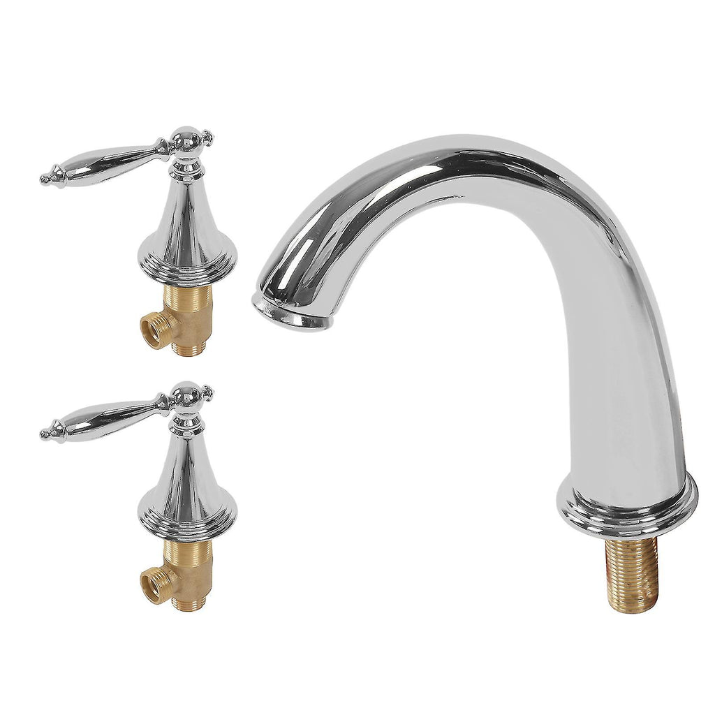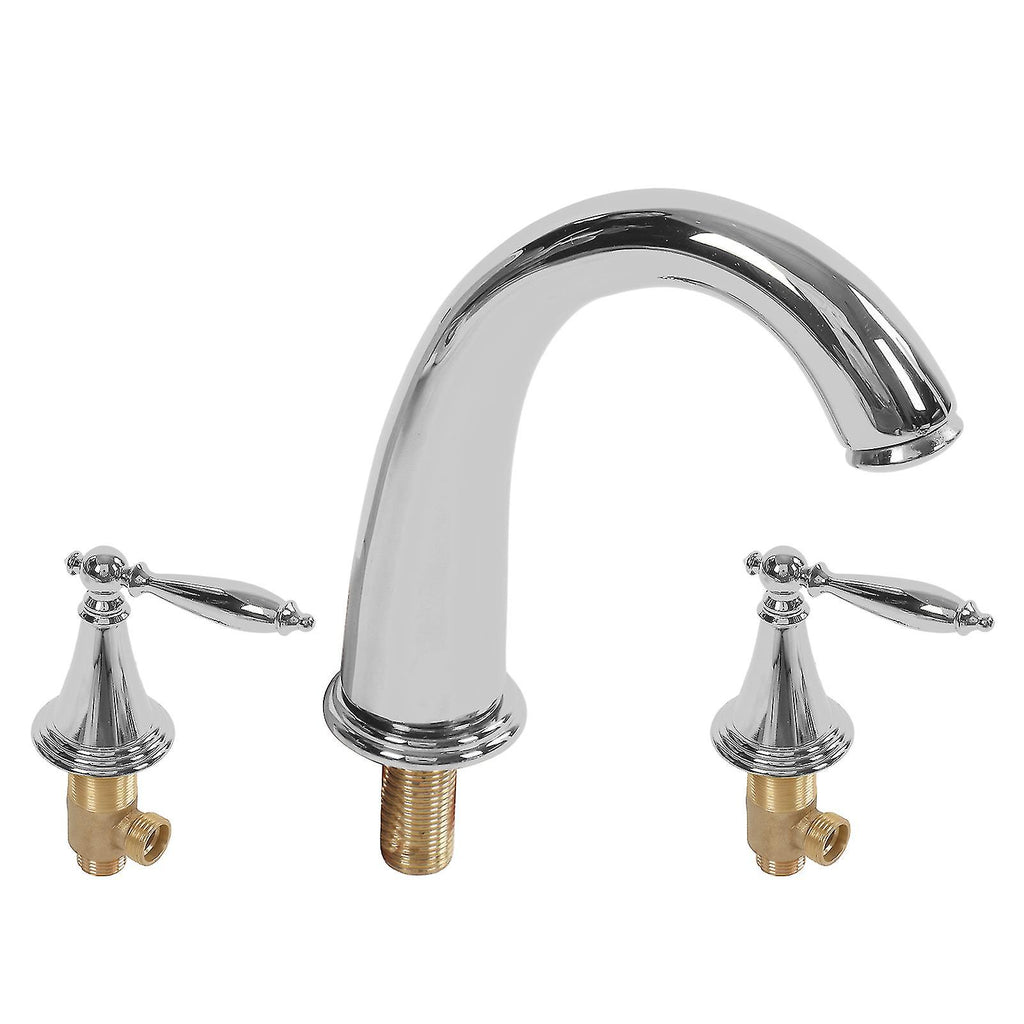 Double Handle Split Faucet Full Copper Three Hole Basin Faucet European Style Bathroom Sink Faucet Silver